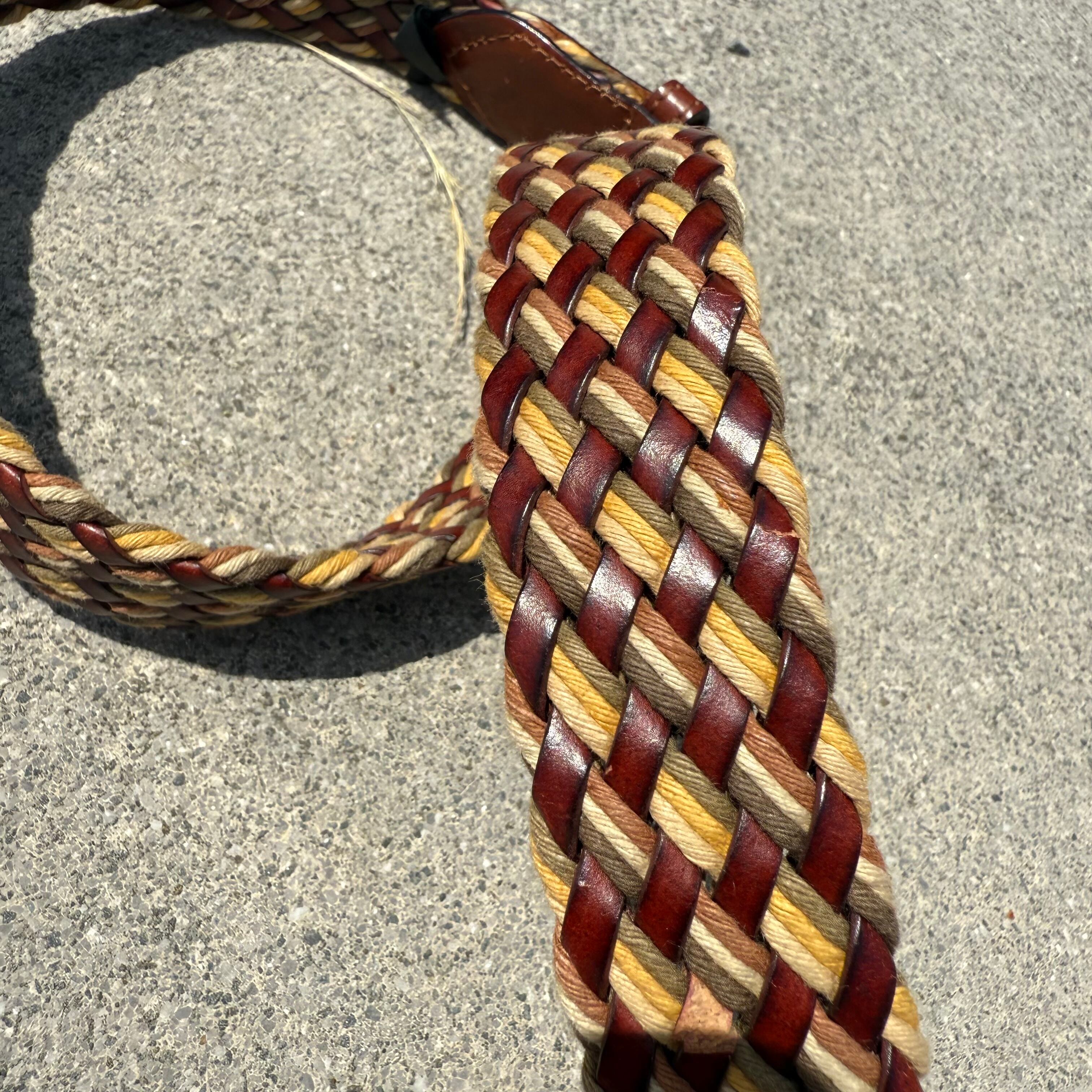1960年創業フランスのレザーメーカー“Amboise”のメッシュベルトです。マルチカラーの編み込み仕様で年中使えます。レザーの質も良く、バックルもユーロメタルの刻印で所有感あります。