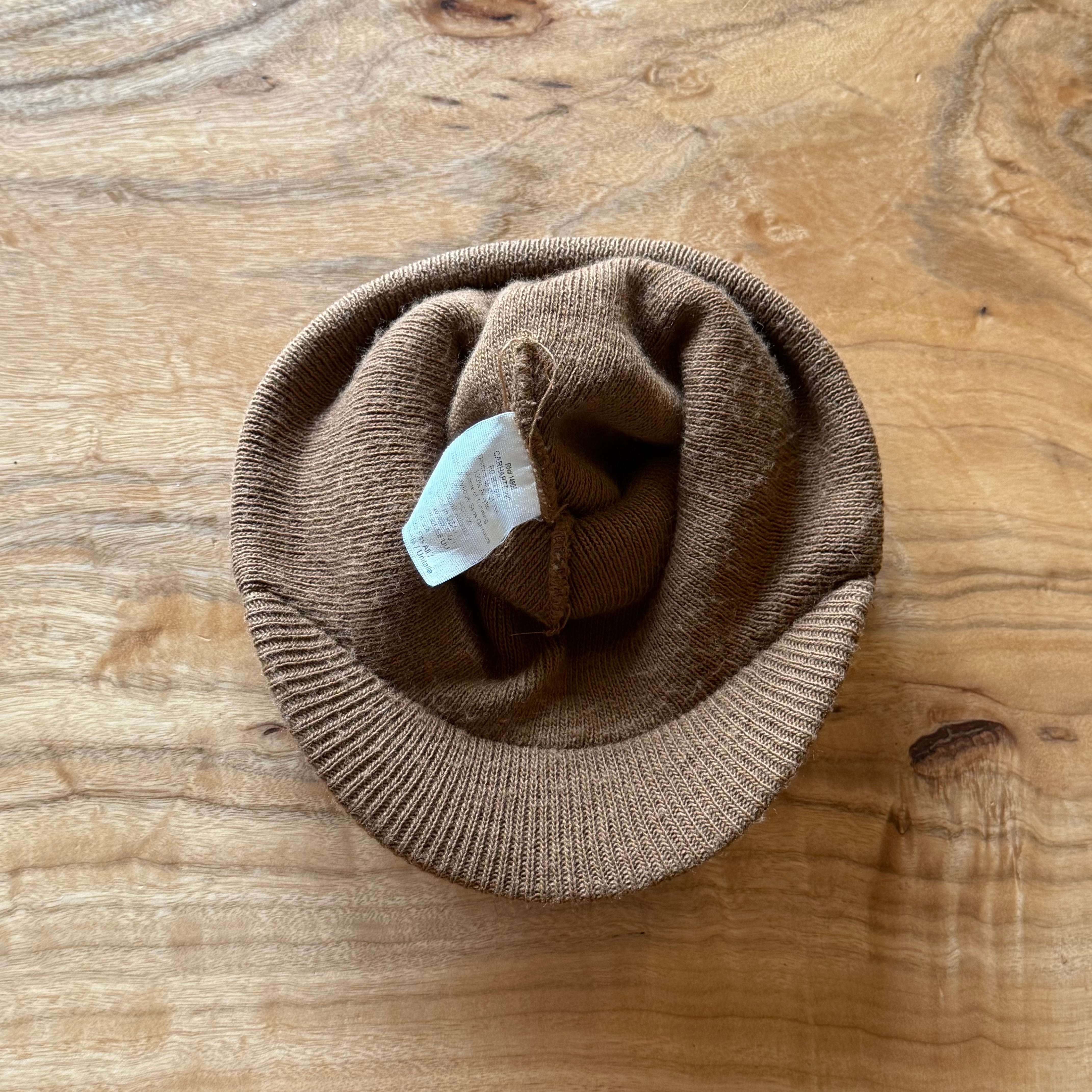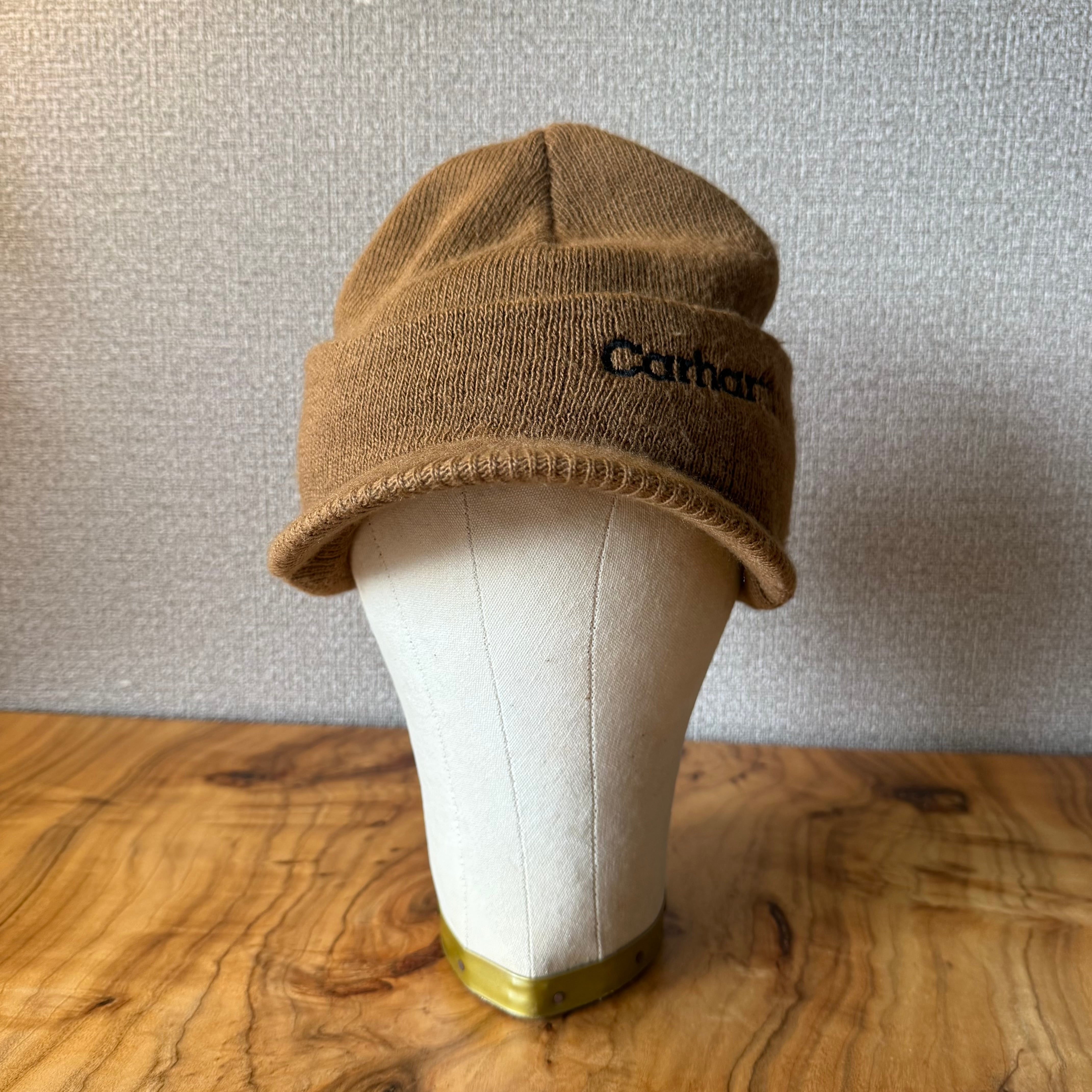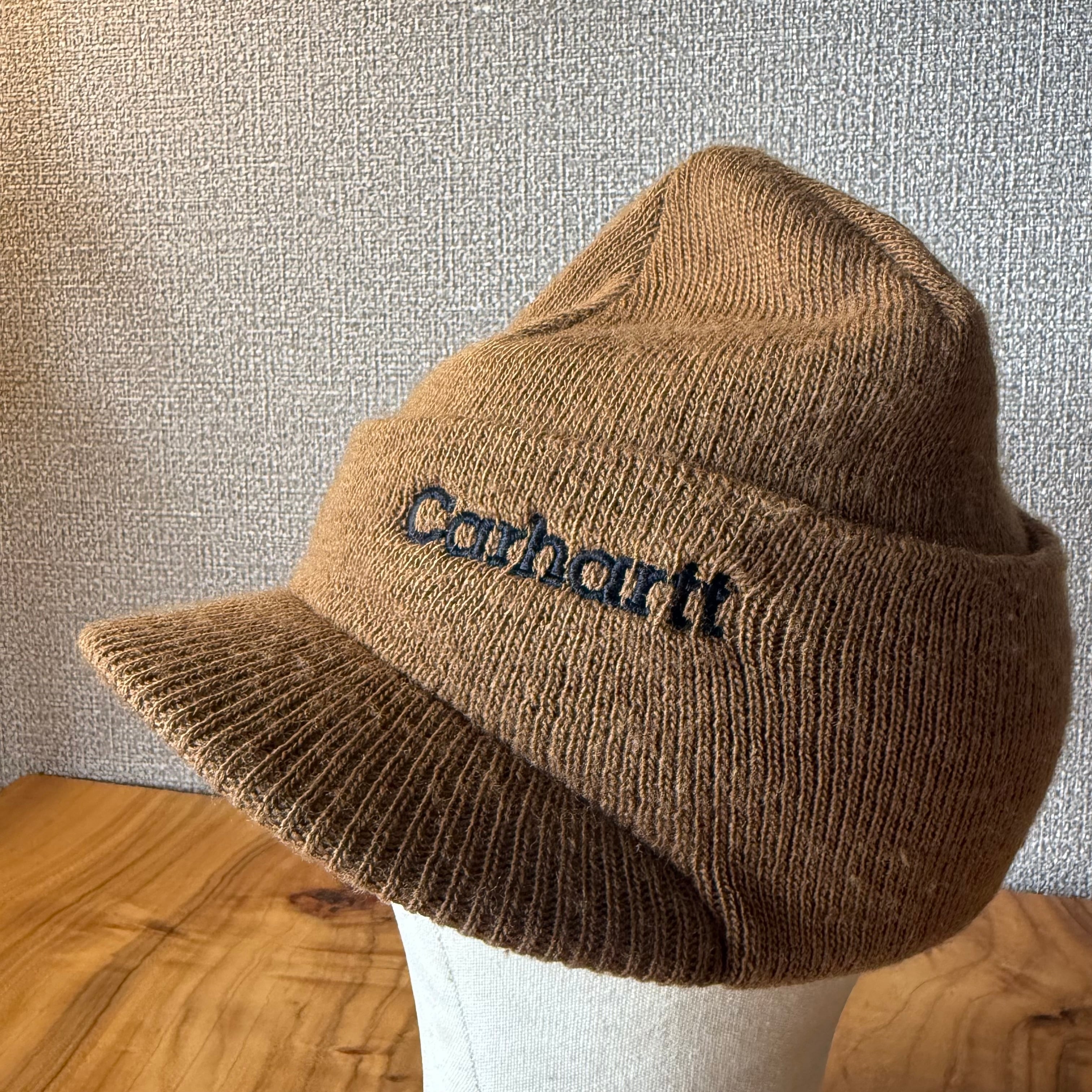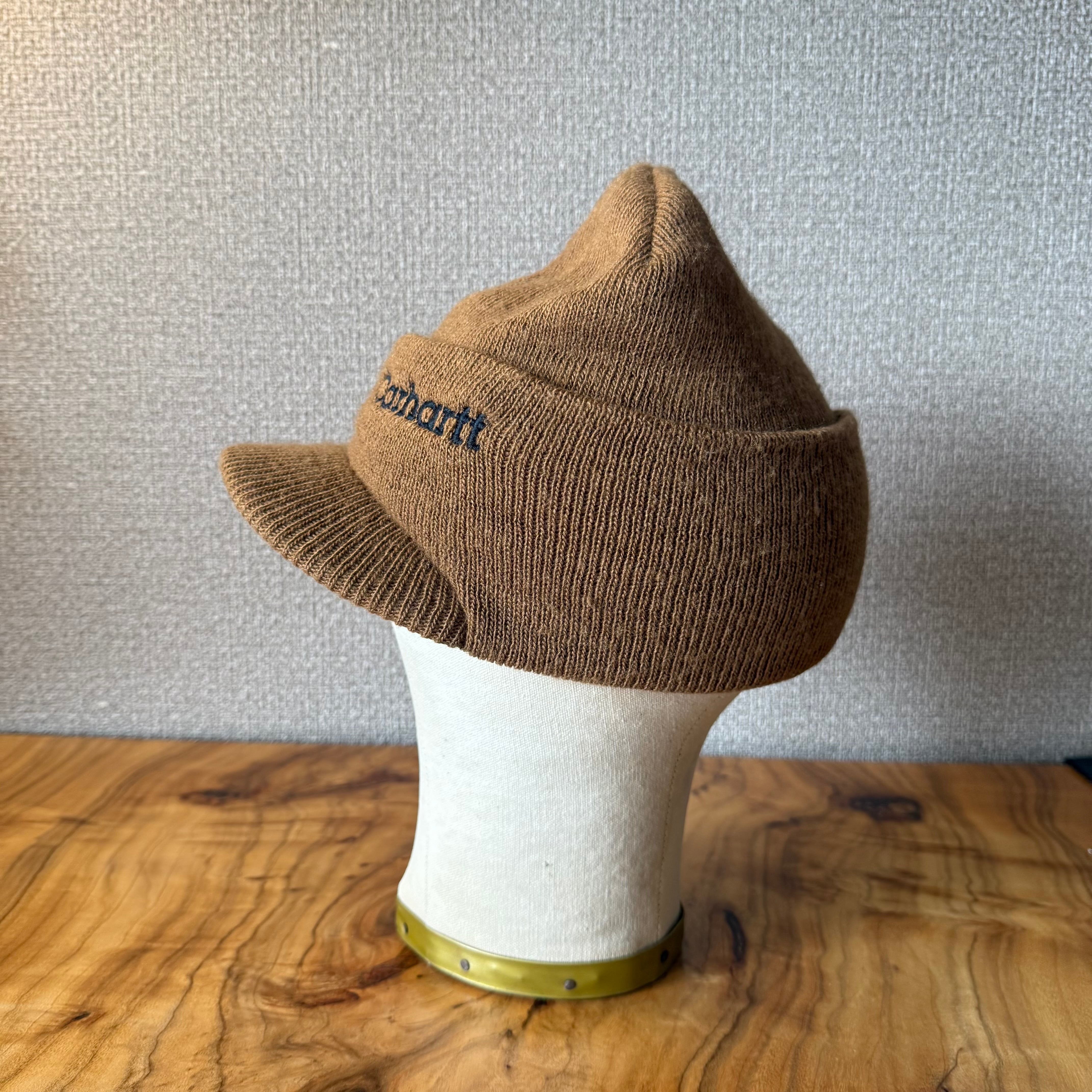 カーハートのつば付きのニット帽です。丈の長さや伸縮性の高いストッキングのような被り心地が特徴。