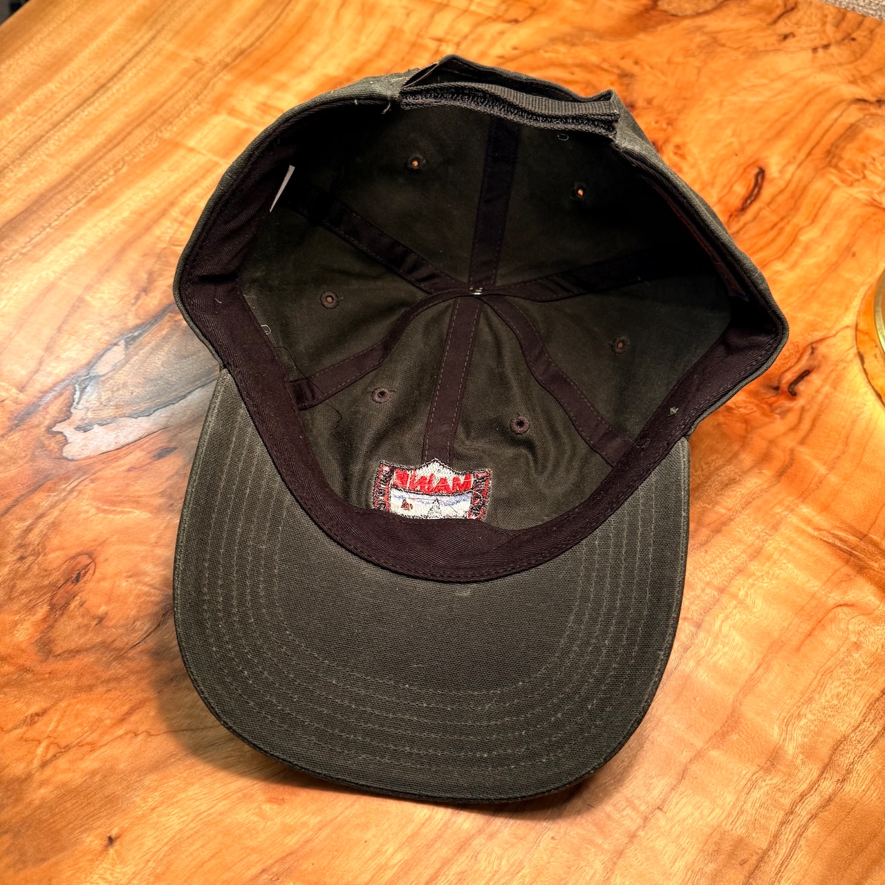 キャップのサイドにはメイン州における在来トラウトであるブルックトラウトが刺繍で入っています。カタチも非常によくオイルド仕様で非常にヘヴィーデューティな一枚です。