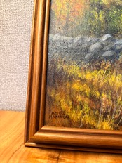 メイン州で見つけた油絵です。まさに自分が訪れた10月ごろのメイン州を描いたであろう一枚です。額装も木製の素晴らしい形のものが使われており、油絵との相性もバッチリです。