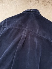 アメリカで見つけたエディーバウアーのコーデュロイシャツです。濃紺の一枚で、XLくらいの大きさです。176cm/63kgの男性で大きめに着ることができました。