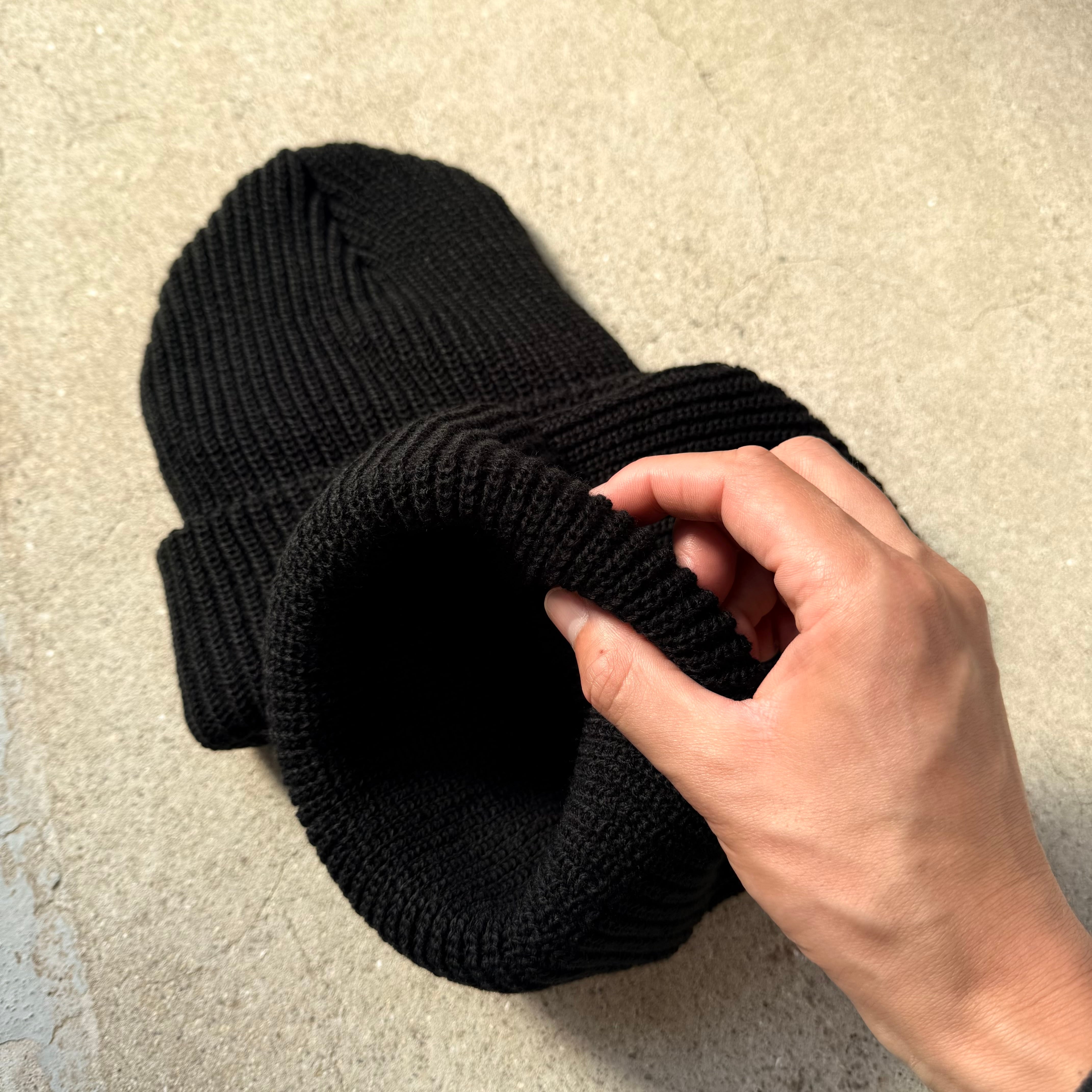 タグはありませんが、アメリカ製の厚手のアクリルビーニーです。色はブラック。