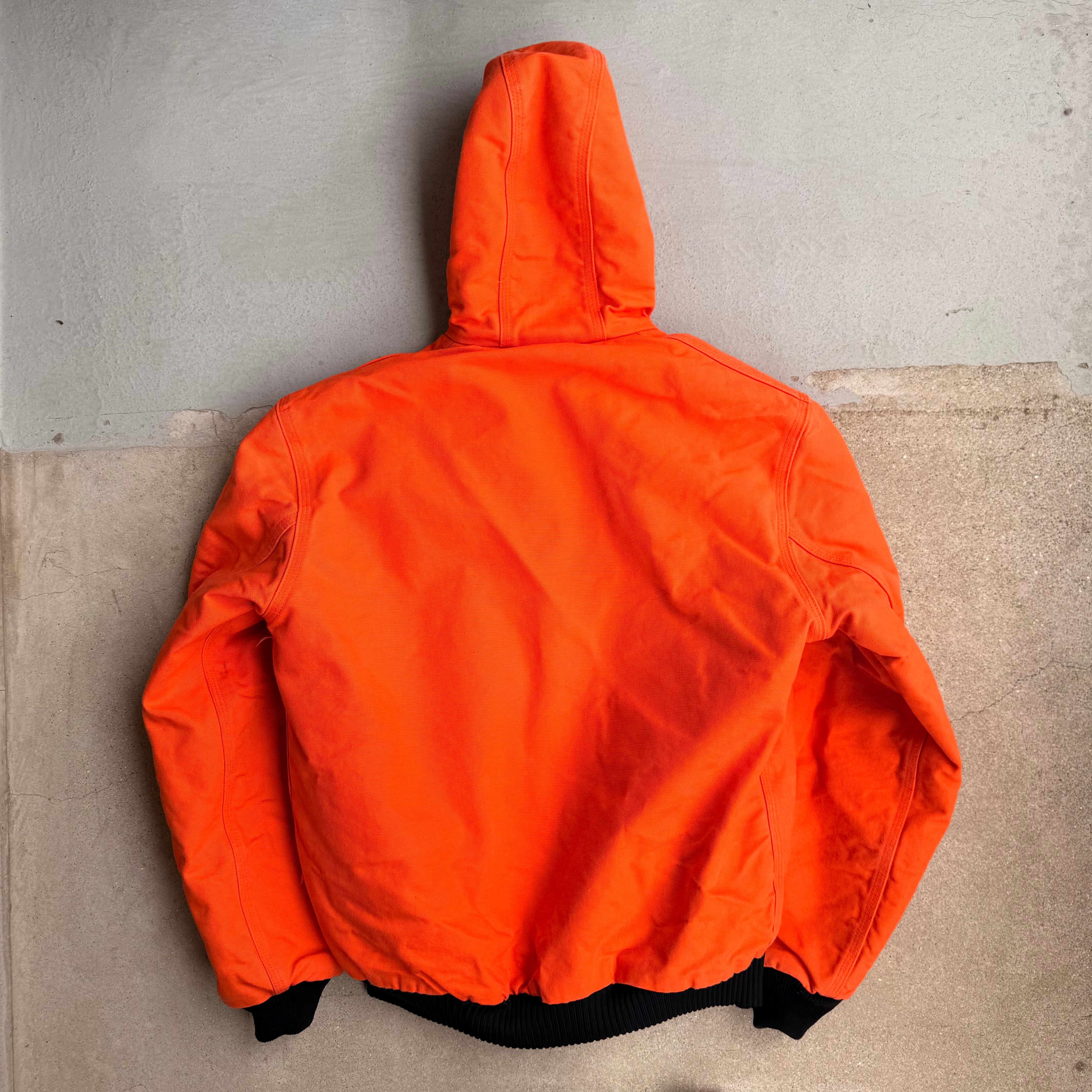 非常に珍しいカーハートのオレンジのアクティブジャケットです。まだ少しだけ近年のものかとおもいますが、USA製でライニングにフカフカの中綿が入っているので暖かいです。
