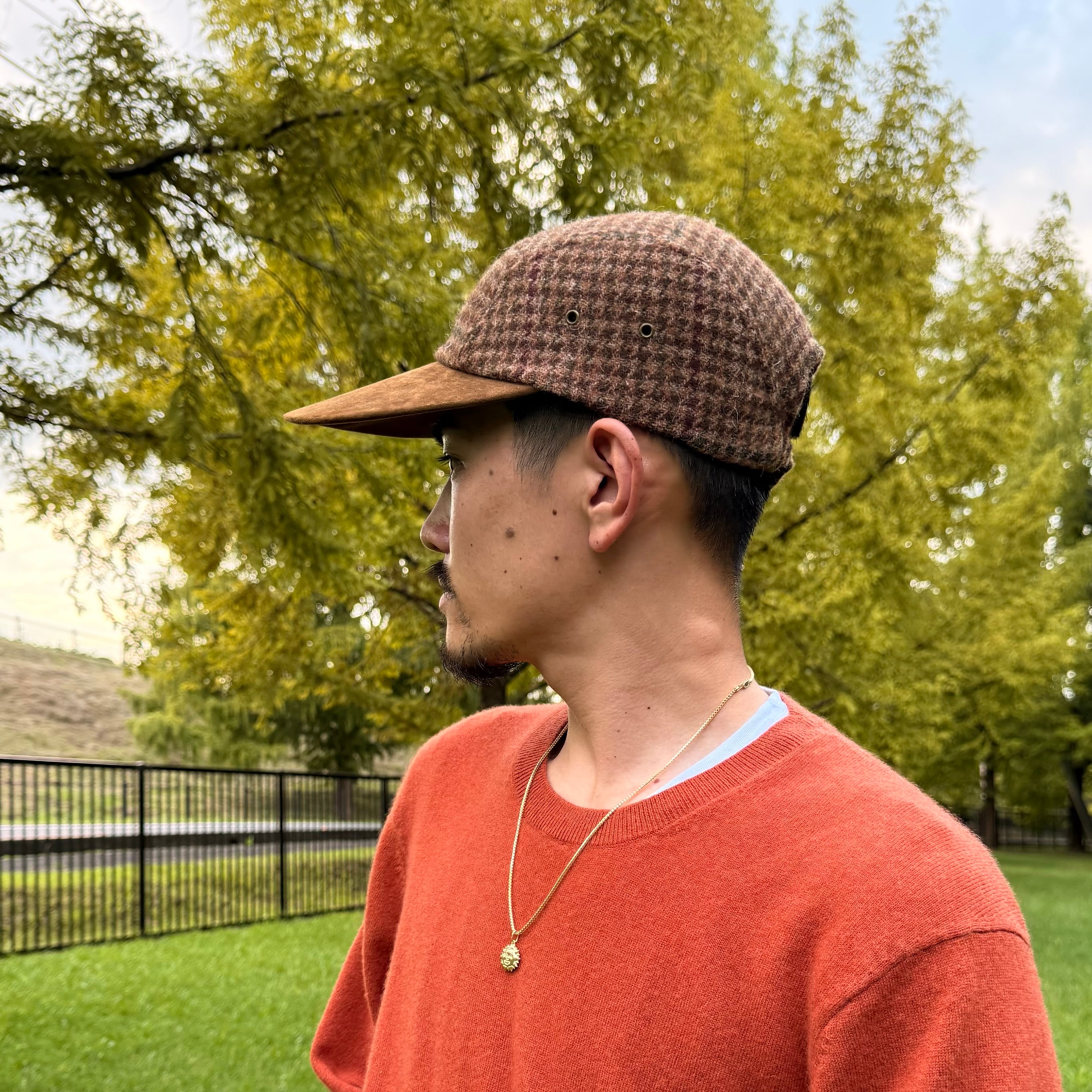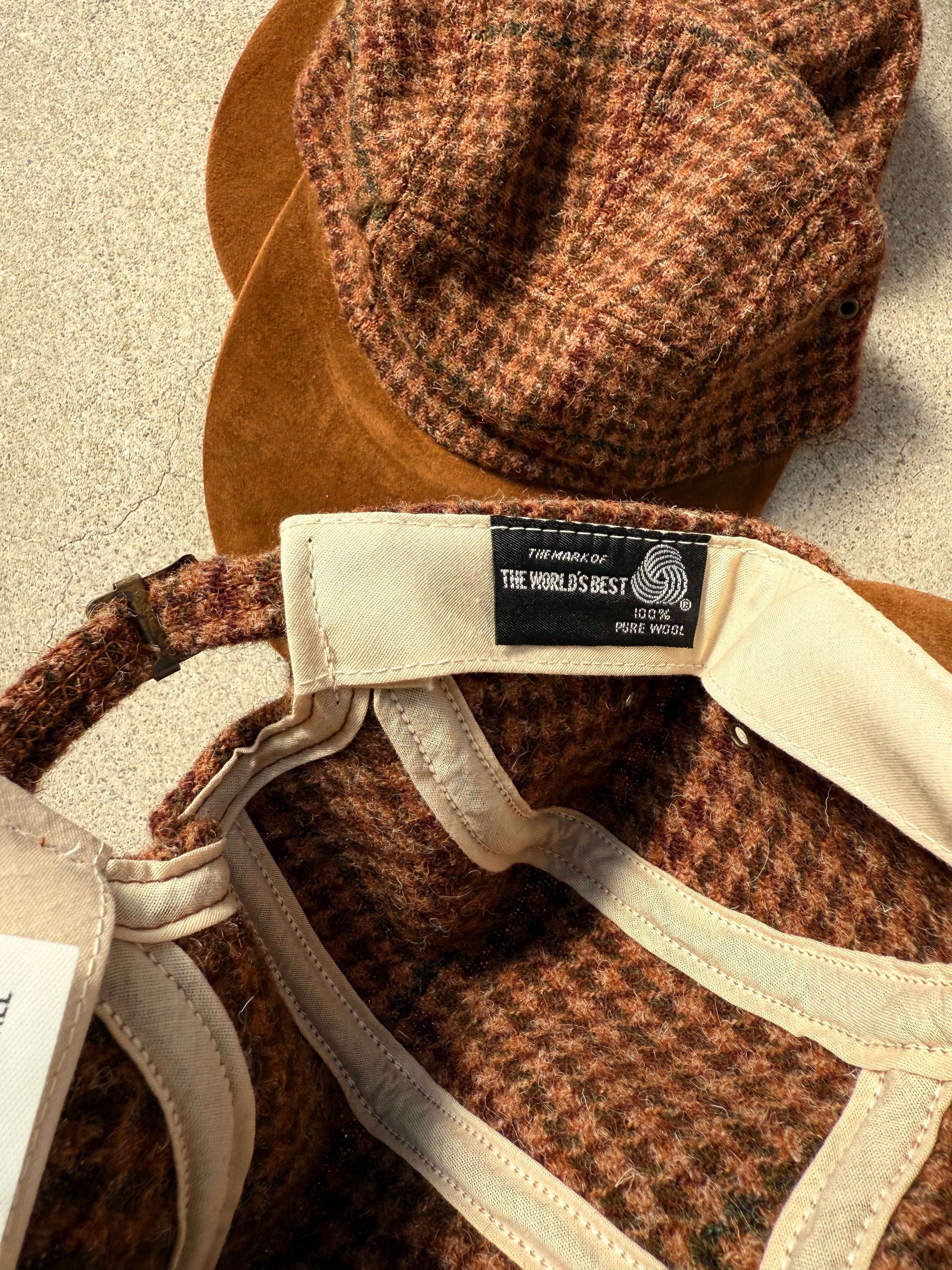 デッドストックで見つけたWool x Suede Longbill Cap。クラウンが千鳥のウールボディ、つばが本革スエードという贅沢仕様。アメリカ製のお金を使って作られた古き良き時代のアイテムです。