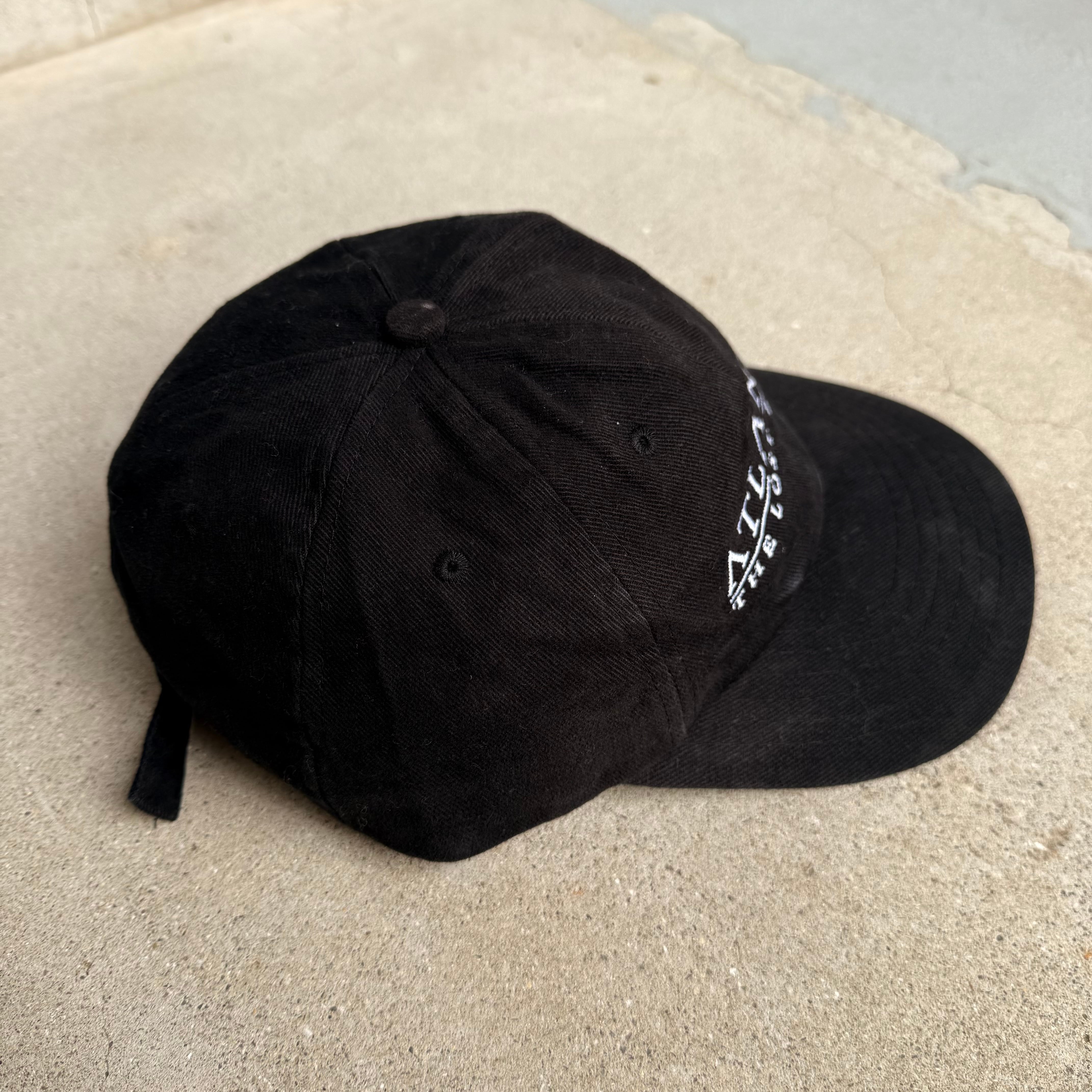 黒でシンプルな1枚ですが、さりげなく好きなキャップをかぶってみてください。