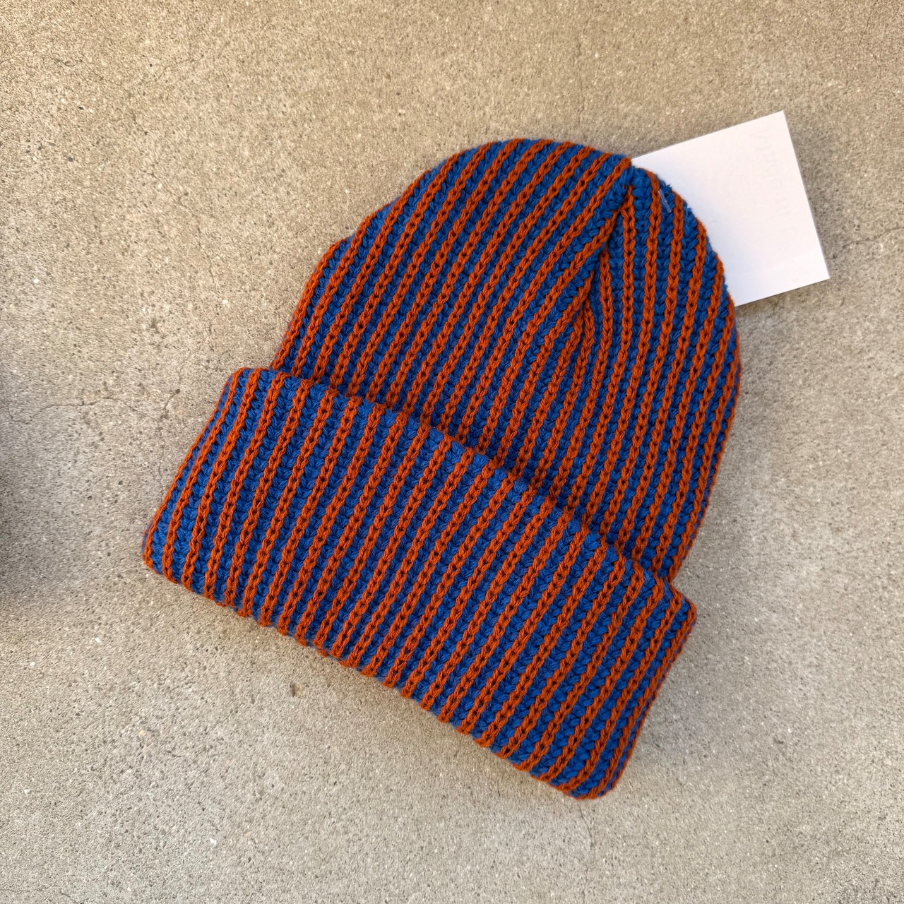 アメリカのポップなキャンディーのようなザクザクのストライプ調が特徴のビーニー。