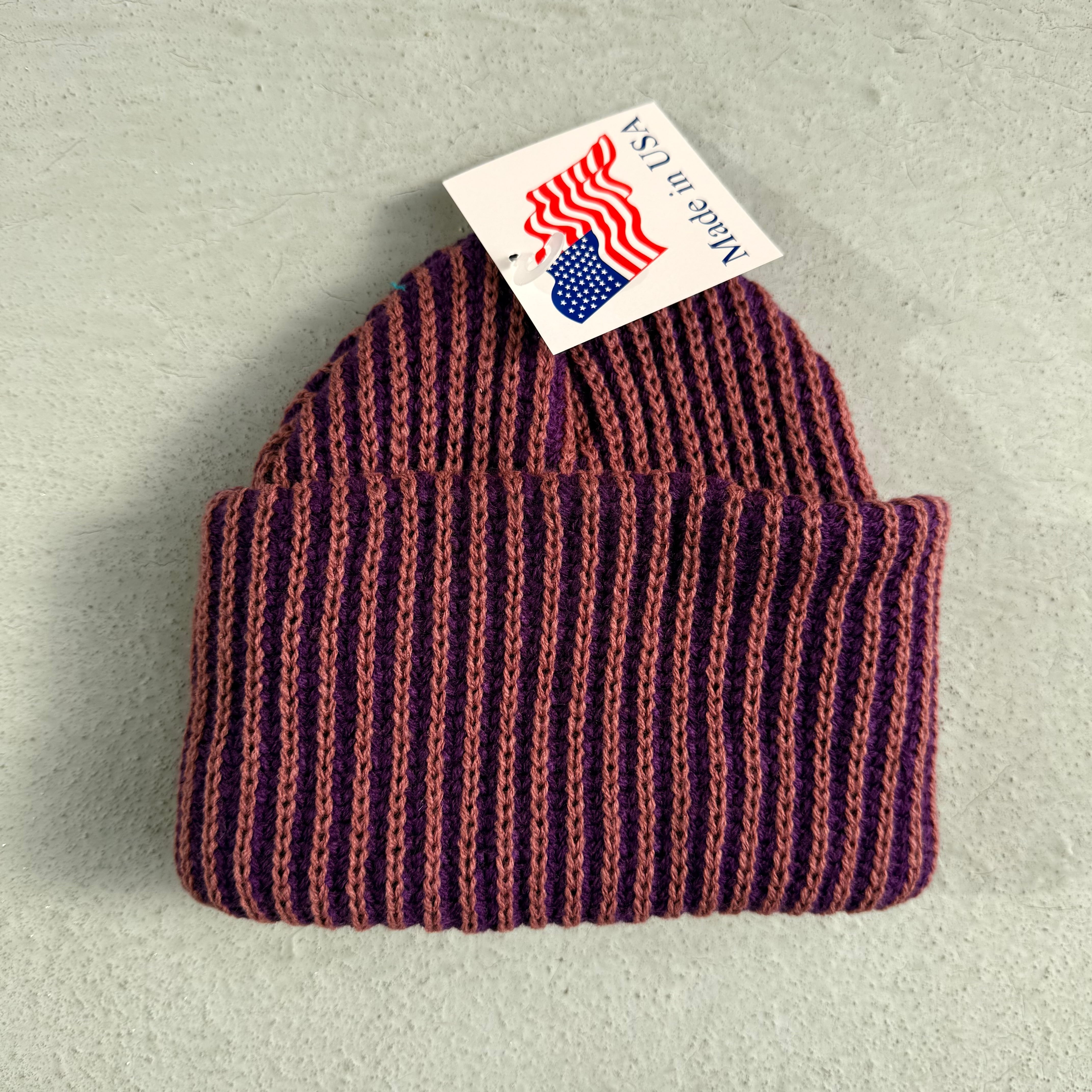 アメリカのポップなキャンディーのようにザクザクのストライプ調が特徴のビーニー