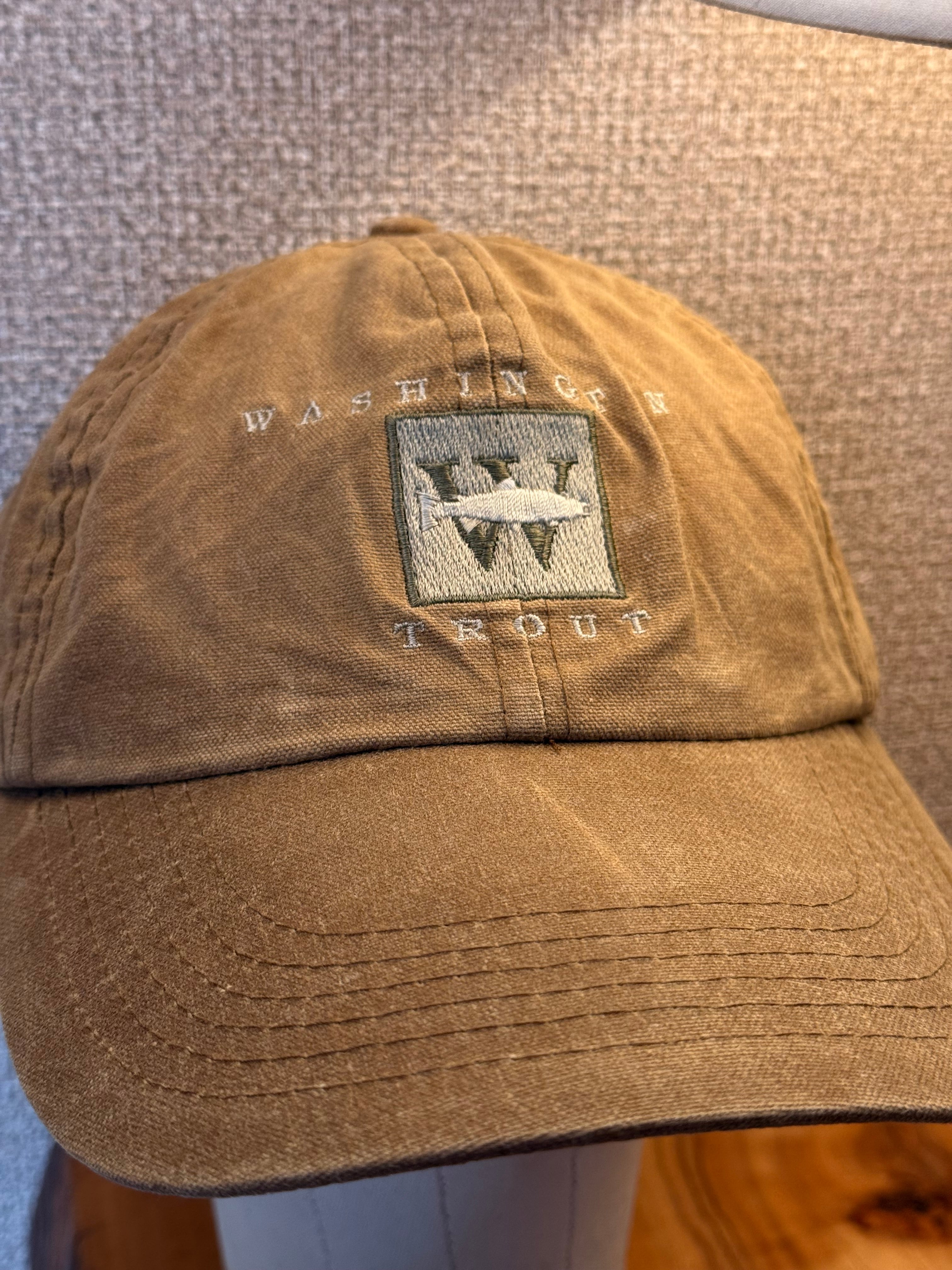 1989年に設立されたワシントン州を拠点とする非営利の魚類保護団体"Washington Trout"のキャップです。ワックスドコットンのロングビル仕様というグッドな一枚。