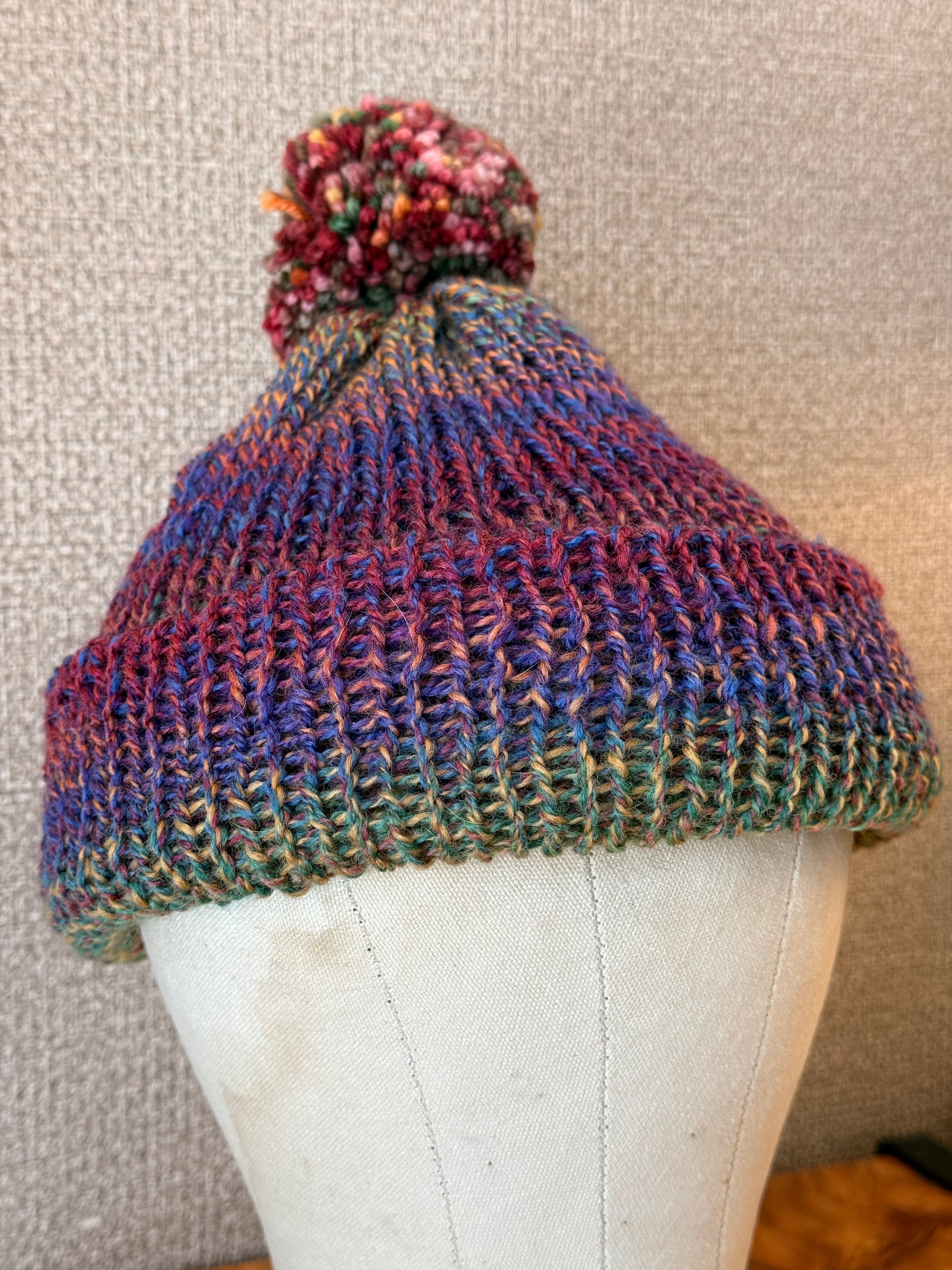 ハンドメイドのウールニット帽です。グラデーションの美しさと、ハンドメイド特有のふわっとした柔らかい被り心地がクセになります。