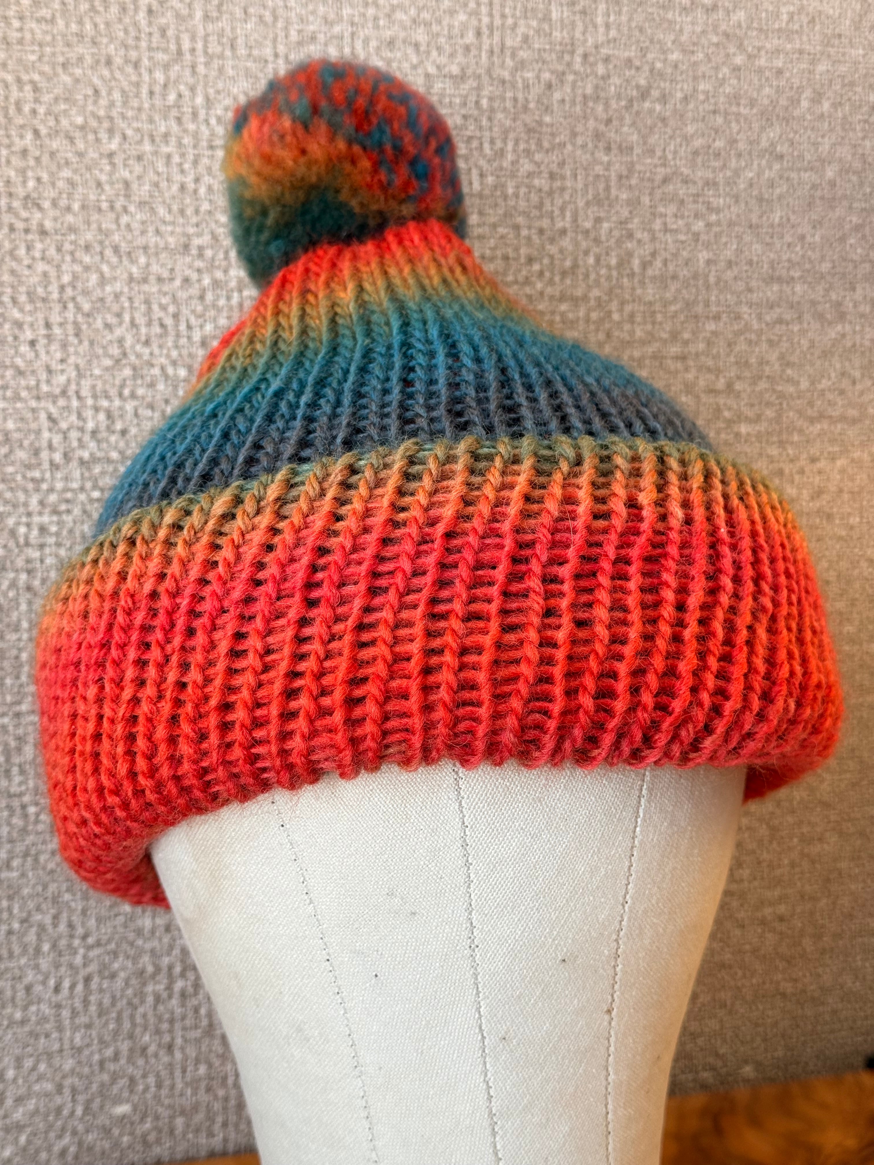ハンドメイドのウールニット帽です。グラデーションの美しさと、ハンドメイド特有のふわっとした柔らかい被り心地がクセになります。