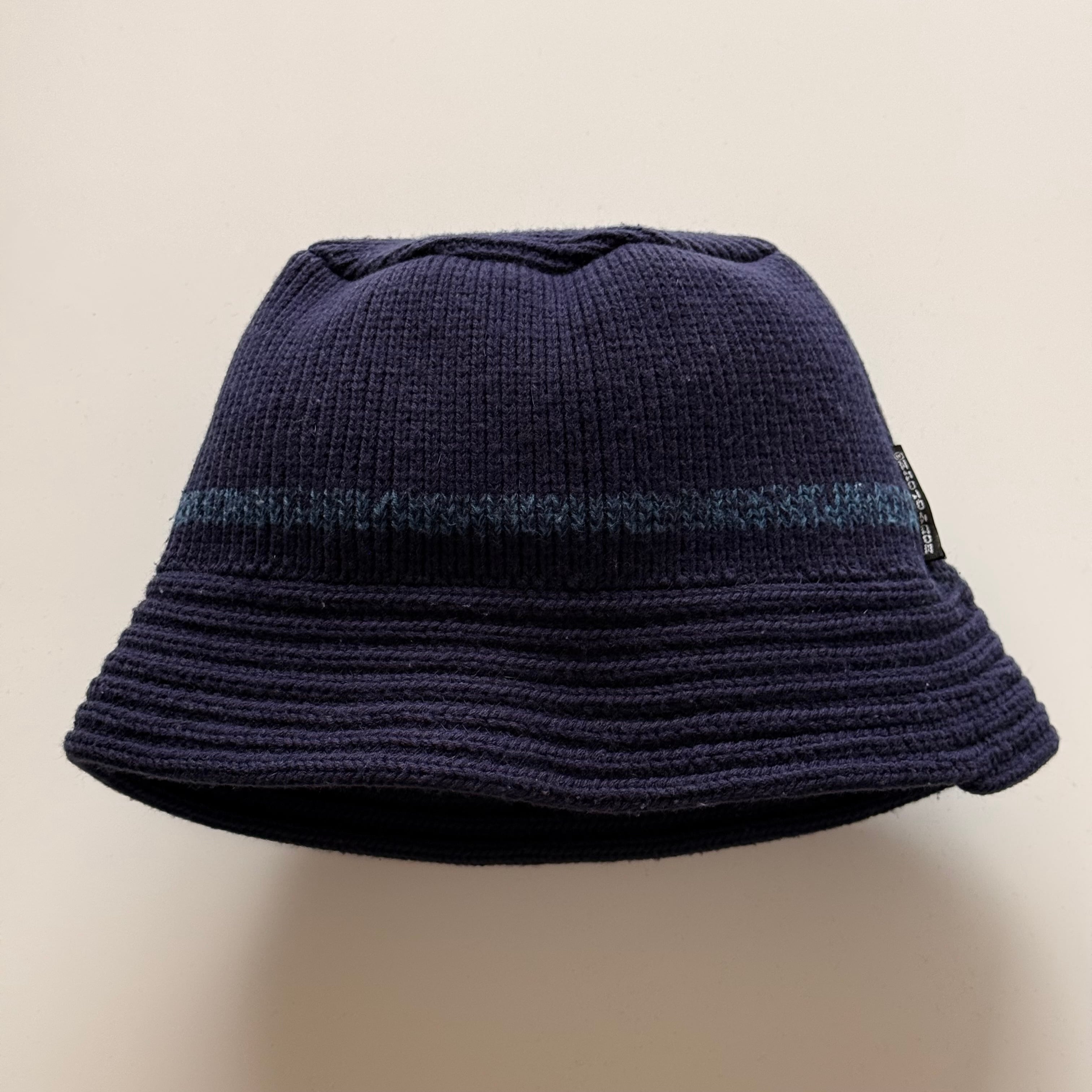 ボディグローブ社製のウールのニットハットです。被りが深く目を隠す感じでかぶれます。