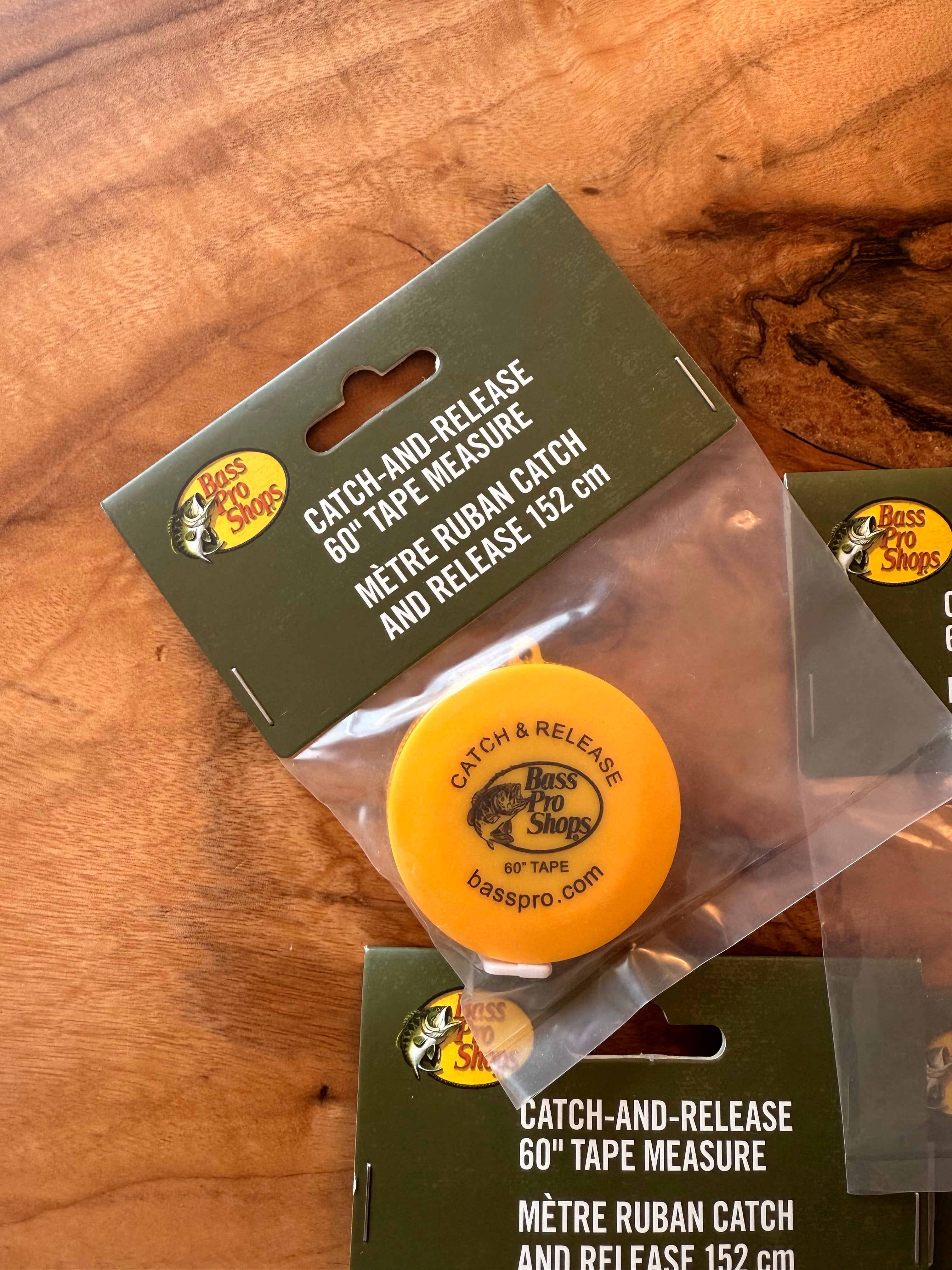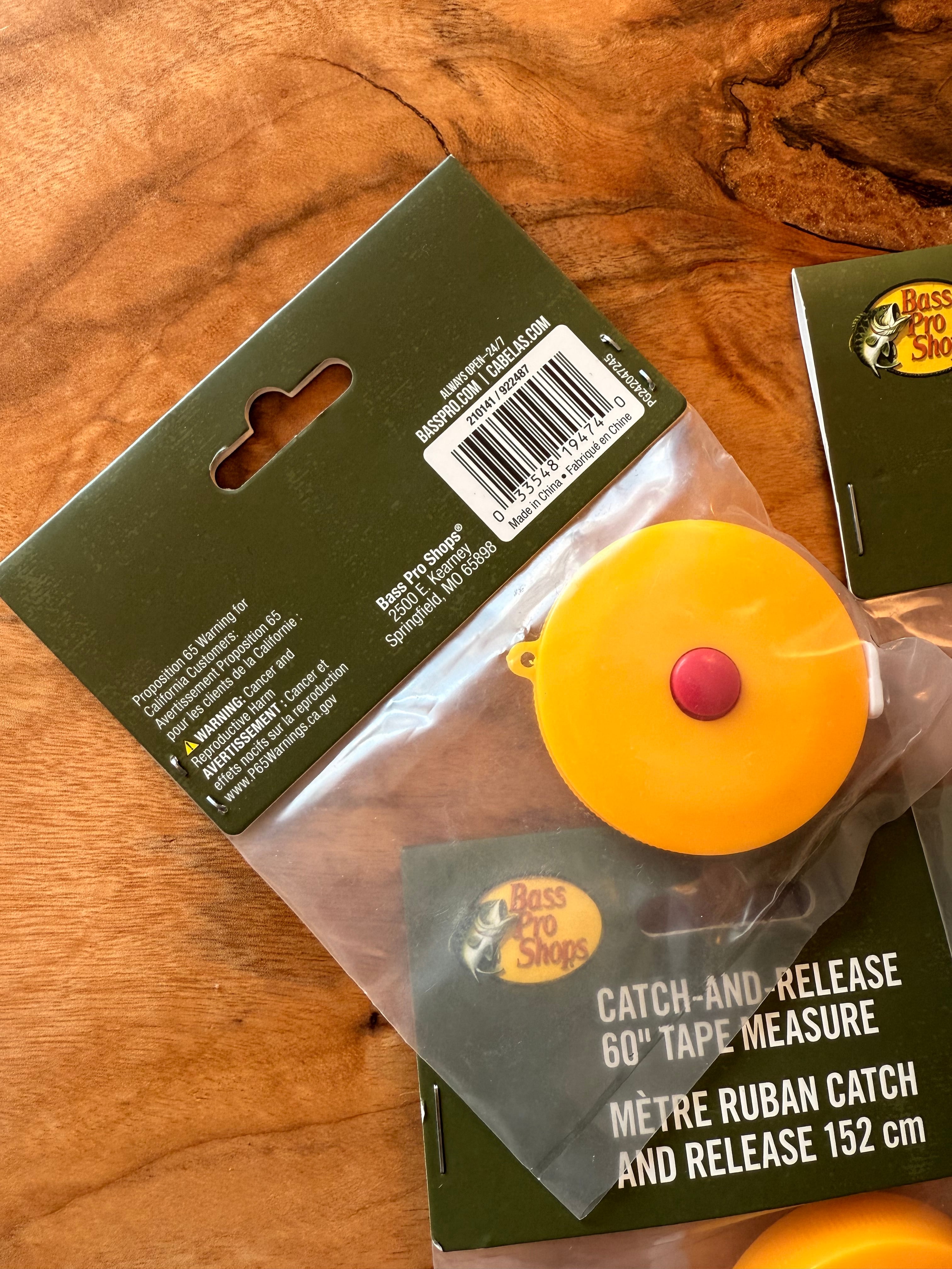 バスプロショップス謹製、イエローの色味が可愛い小さなメジャーです。家でも使えるし、釣りの時にポッケやバッグに忍ばせとけば便利です。150cmまで計れます。