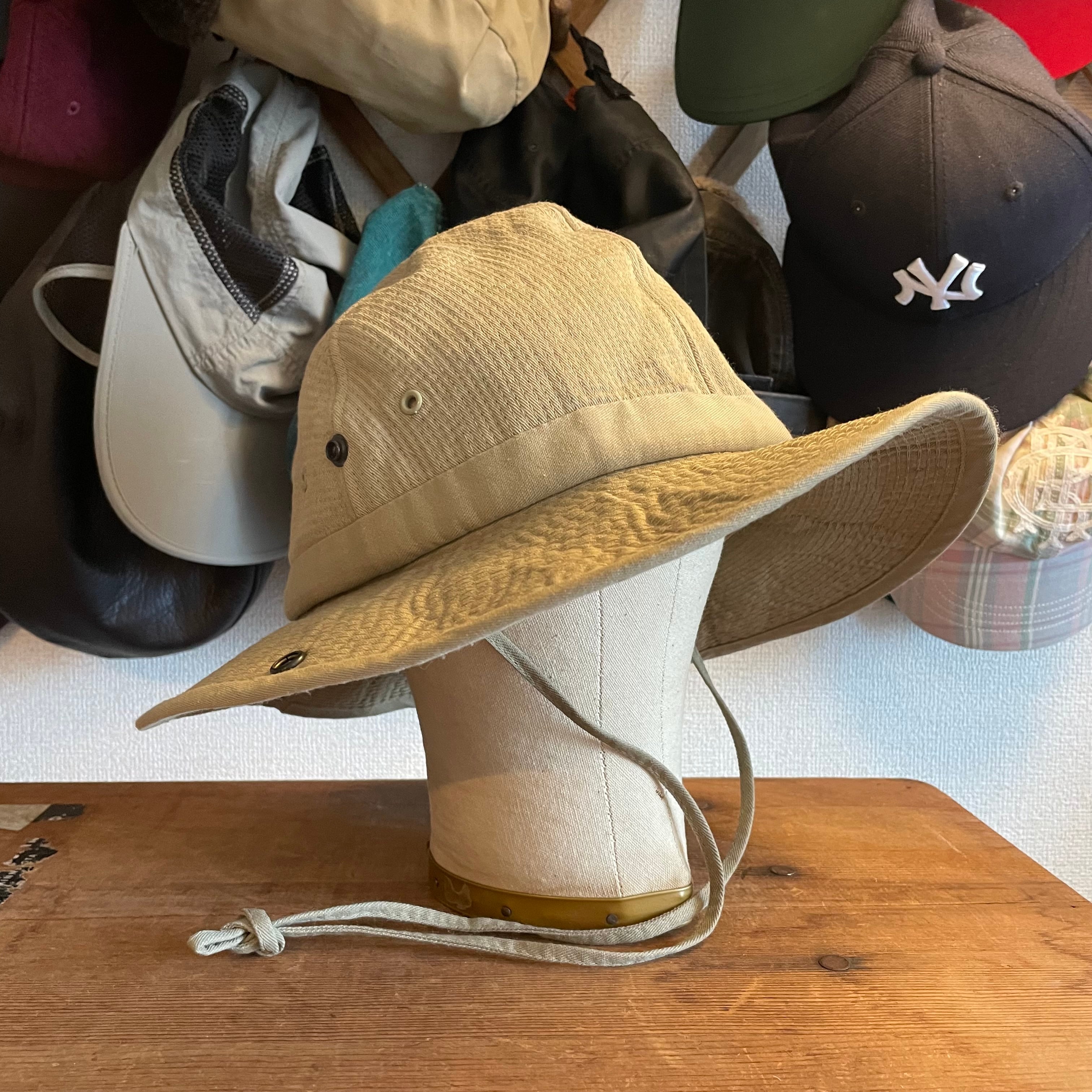 つばからクラウン全体にまで細かい間隔でステッチが施されたコロンビアのメモリアルなハットです。サファリな雰囲気を感じる冒険に出かけたくなるハット。面白いのがサイドのパッチが片方しか付いていないこと。両サイドについてカウボーイっぽくなるのかと思いきや、片側のみ。