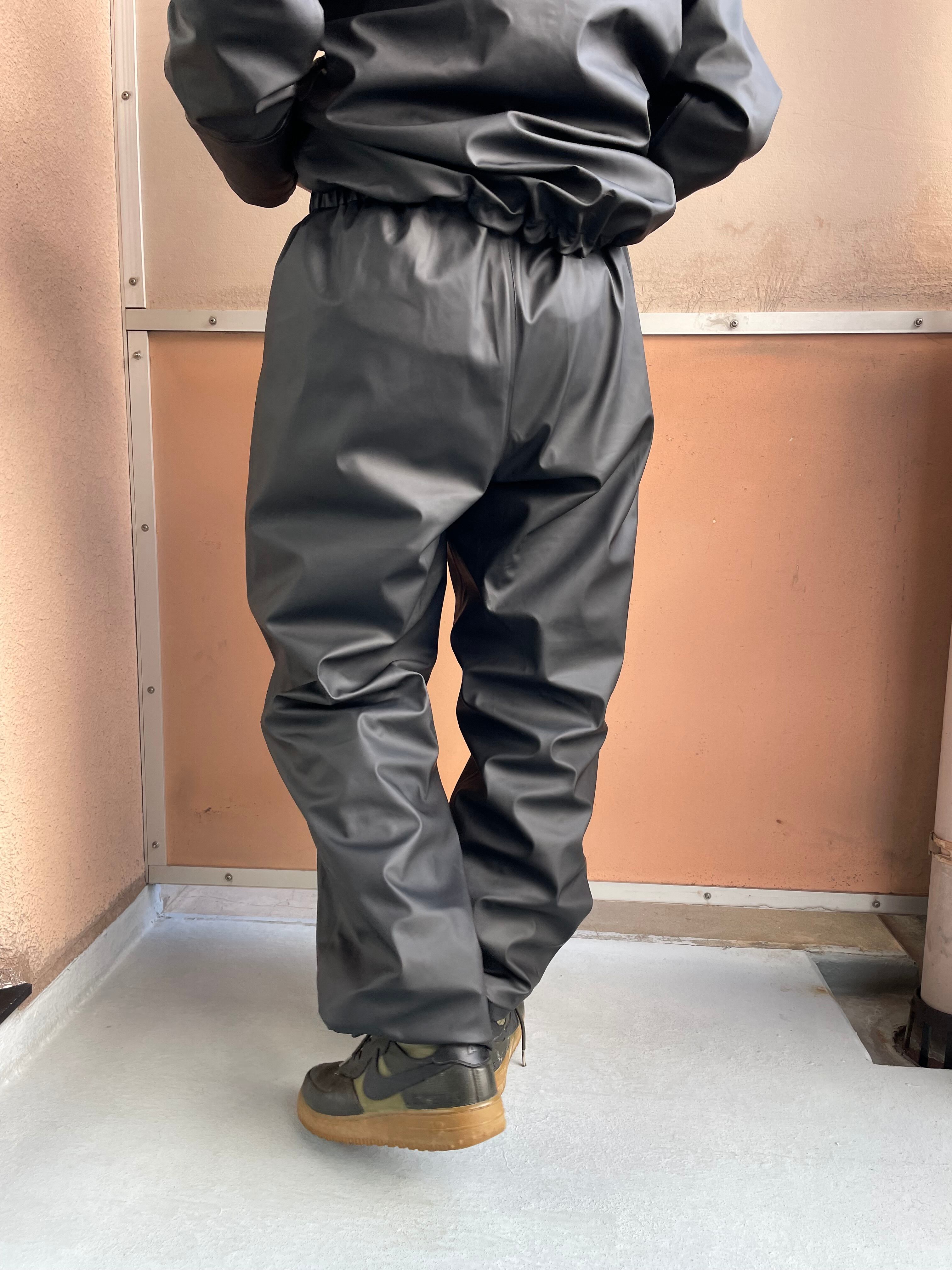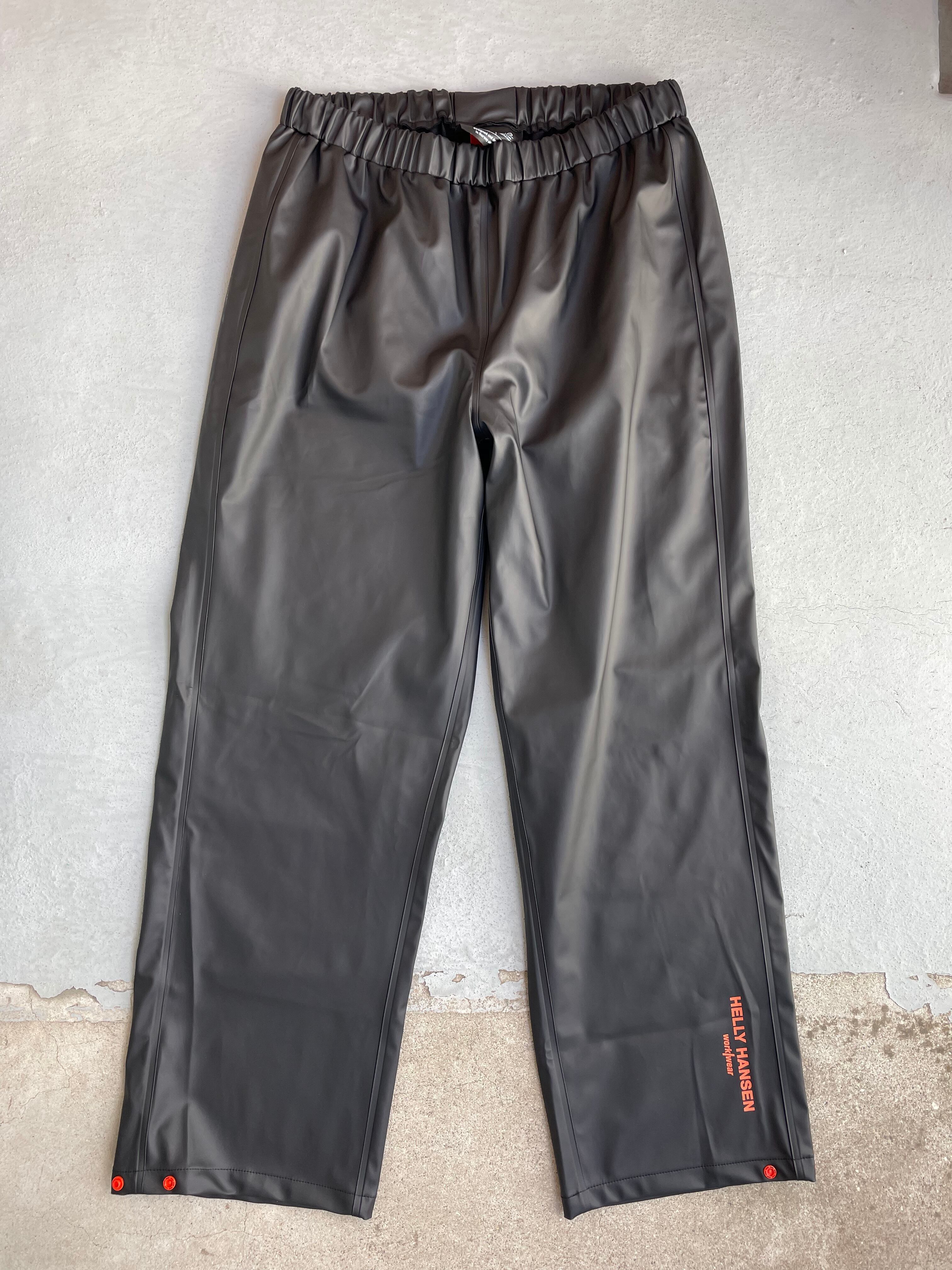 このパンツはイメージで言うとガンガン使い倒せるけどカッコイイゴムガッパ。弱いところをあげるとすると、汚れがつきやすいこと。コンクリートやガードレールなどにもたれると色が移ってしまいます。しかし、ウェットティッシュなどで拭き取ると大体取れます。本来はヘリーハンセンが漁師さんや外仕事をする人用に作っているものなので、ガンガン汚す前提で道具として、作っているのだと思います。だから釣りなんかにはとても良いと思います。アメリカの漁師さんがよくきてるゴムガッパは血がついても落としやすいみたいです。(ゴアテックスとかだと、落ちにくい)