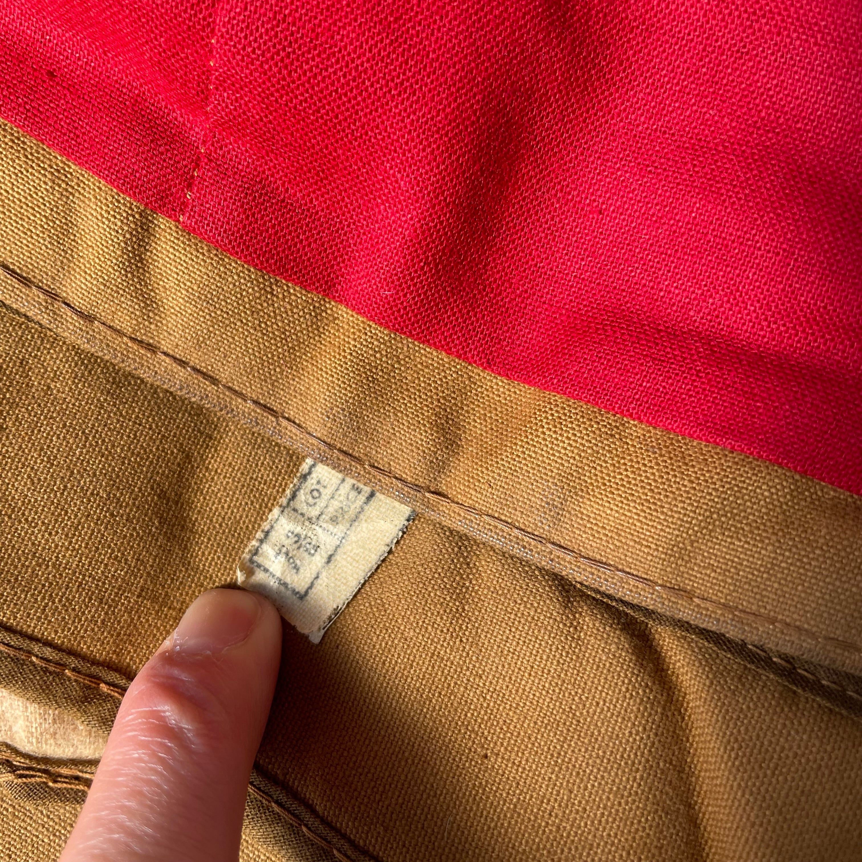 かなり古いハンティングキャップです。通常のベージュのボディカラーに加え、生地をバックから折り返すことでレッドカラーの生地が頭を覆います。すごく昔のハンティングキャップ特有のディテールが面白いです。