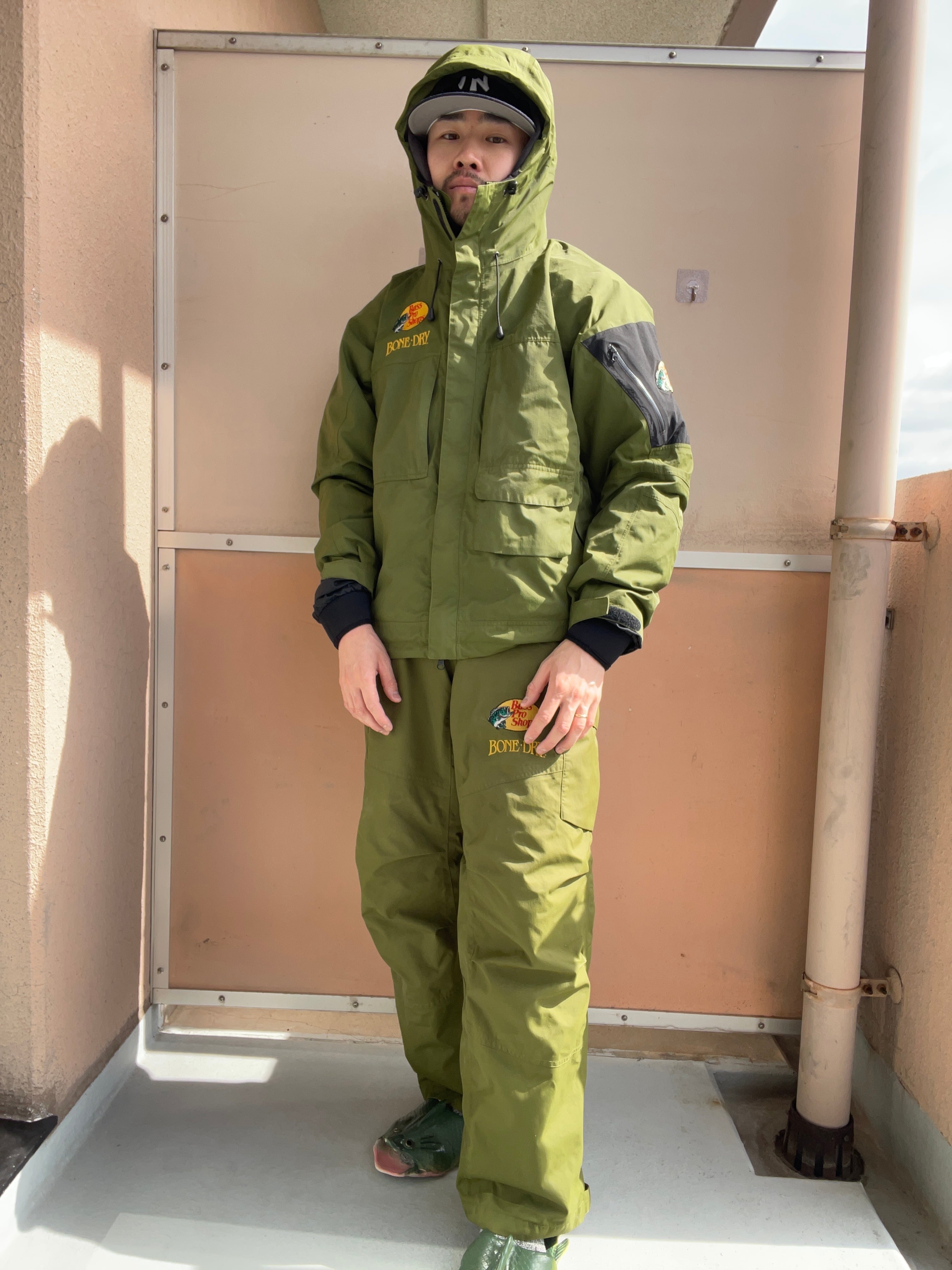 アメリカで見つけた古いバスプロショップスのフィッシングジャケットです。色の発色からシルエット、アームの立体裁断など、とてもカッコいい一枚です。胸部のポッケは控えめながら、腕やサイドにもポケットがつきます。ドローコードはピンピンでしっかりしています。袖先はフィッシングジャケットでよくみられるネオプレーン素材で魚のリリース時や水に触れてもジャケットが濡れることを防ぎます。