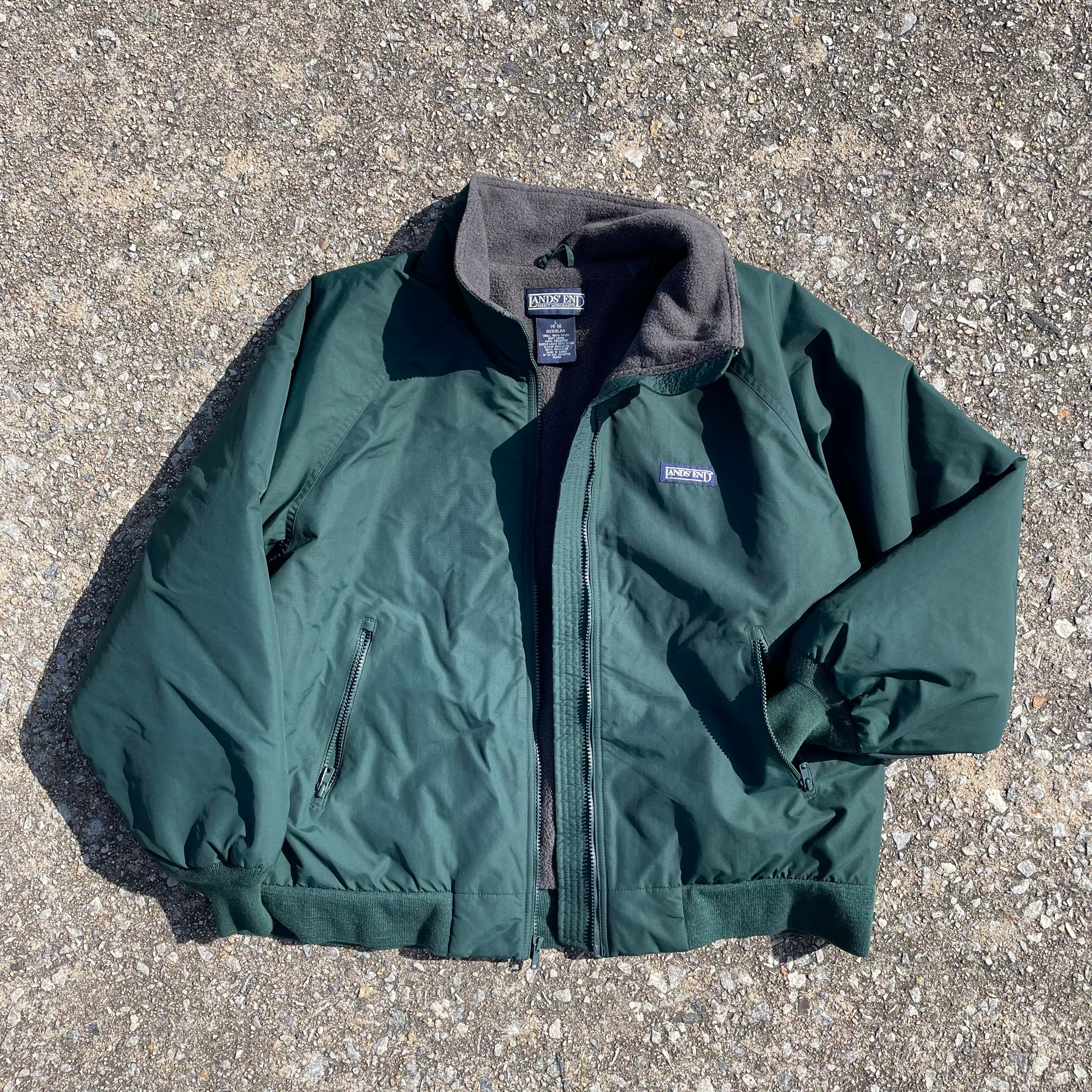 アメリカで見つけたランズエンドのシェルジャケットです。おそらく水を通していないデッドストックです。シェルはシャリっとしたナイロン。内側は厚手フリースです。水を通していないのでかなりふかふかです。袖の部分はフリースじゃ無いので袖を通しやすいですし、動き心地も良いです。