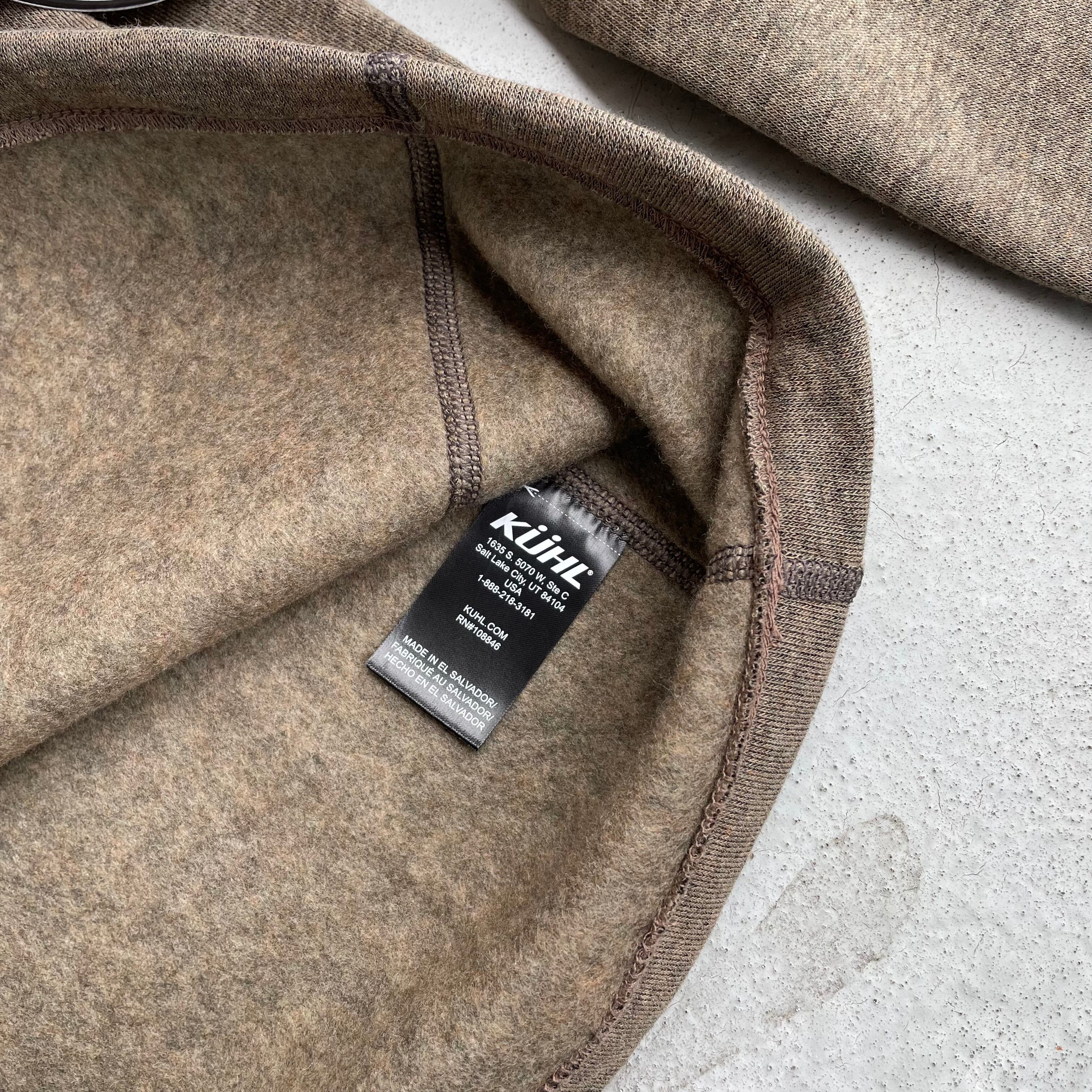 こちらRevel 1/4 ZipはKuhl独自の立体裁断された生地をステッチによってジャケットに組み込んだ一枚です。動きやすさや人体の関節に沿って作られた結果なわけですが、見た目もめちゃくちゃカッコいいです。狙ってないパフォーマンスウェアなカッコ良さが良いですね。かといってスポーティに寄りすぎてもなく、色味や質感が絶妙でクラシックなセーターのような印象もあります。