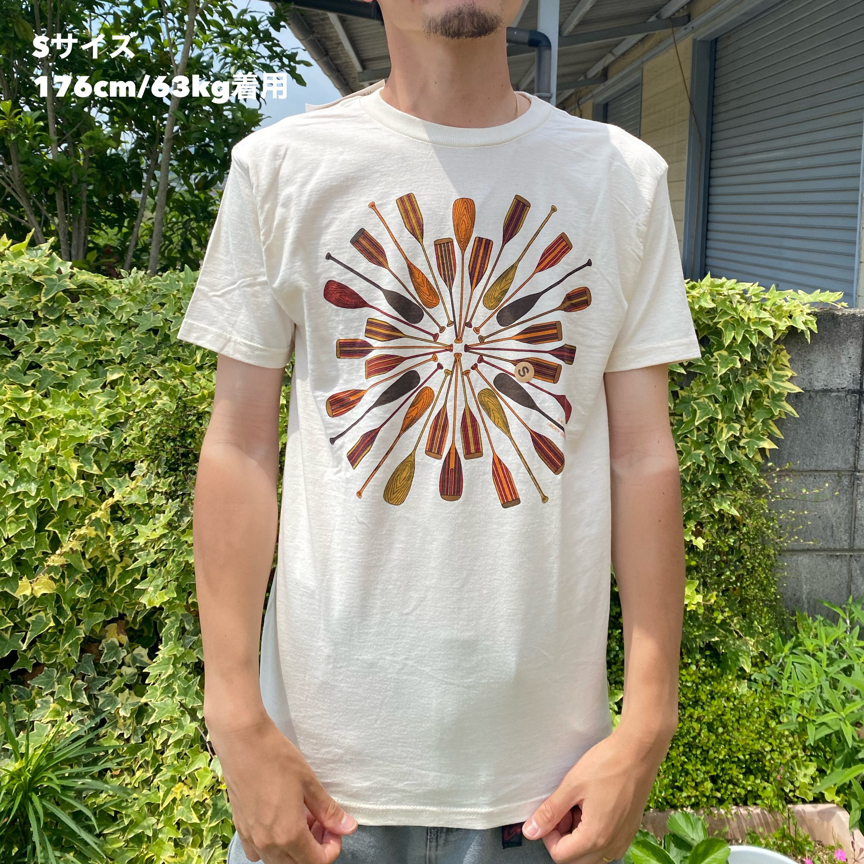 去年メイン州で買い付けたLiberty GraphicsのTシャツ“パドルVer”です。カヤックで使う木製のパドルが円状に集まり、シルクスクリーンプリントされた一枚です。