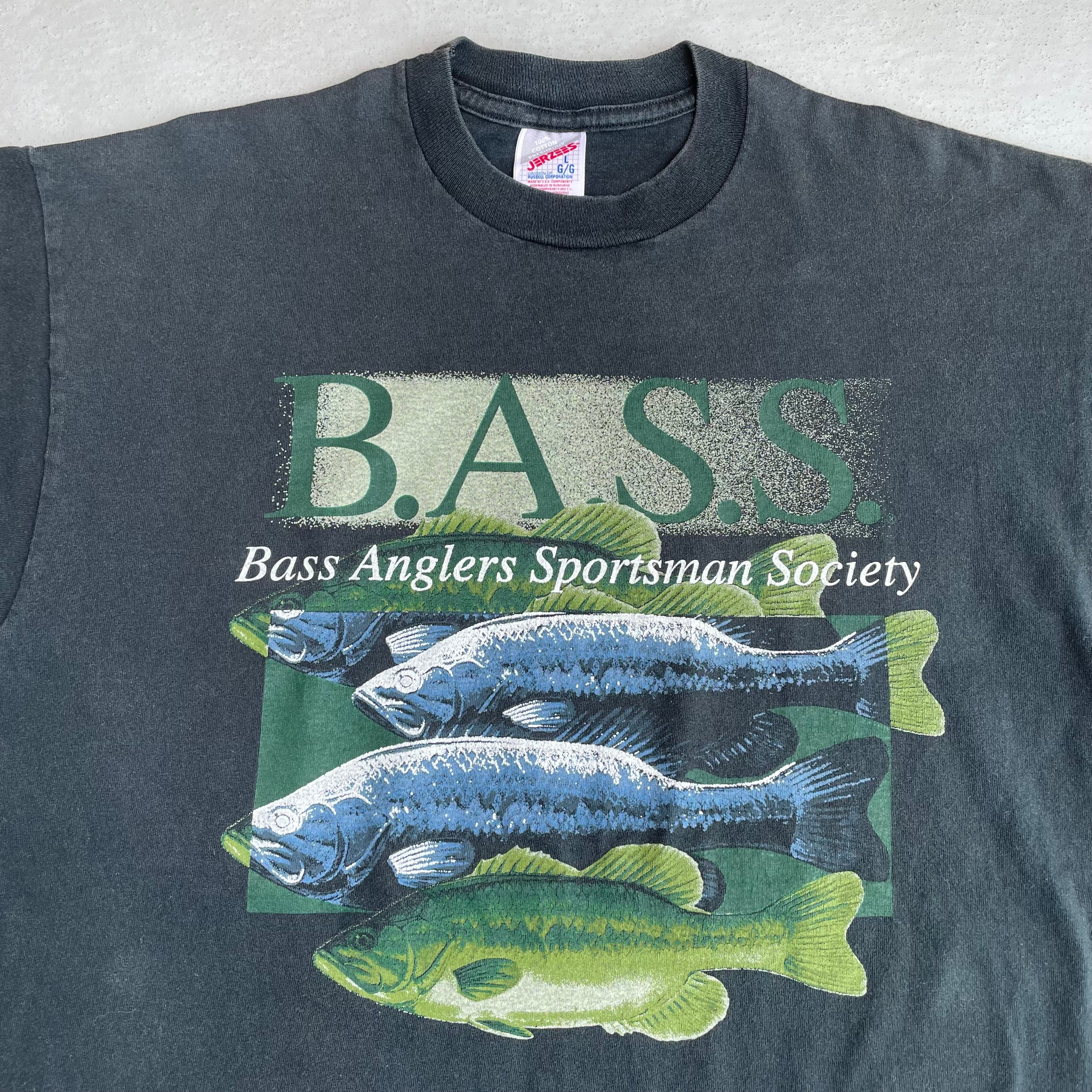 アメリカのバスフィッシングトーナメントの団体“B.A.S.S.”のTシャツです。アメリカでのバスフィッシングをスポーツとして確立させた団体とも言われています。日本人もトーナメントに参戦していたり、いわばスポーツフィッシングのメジャーリーグのような存在です。