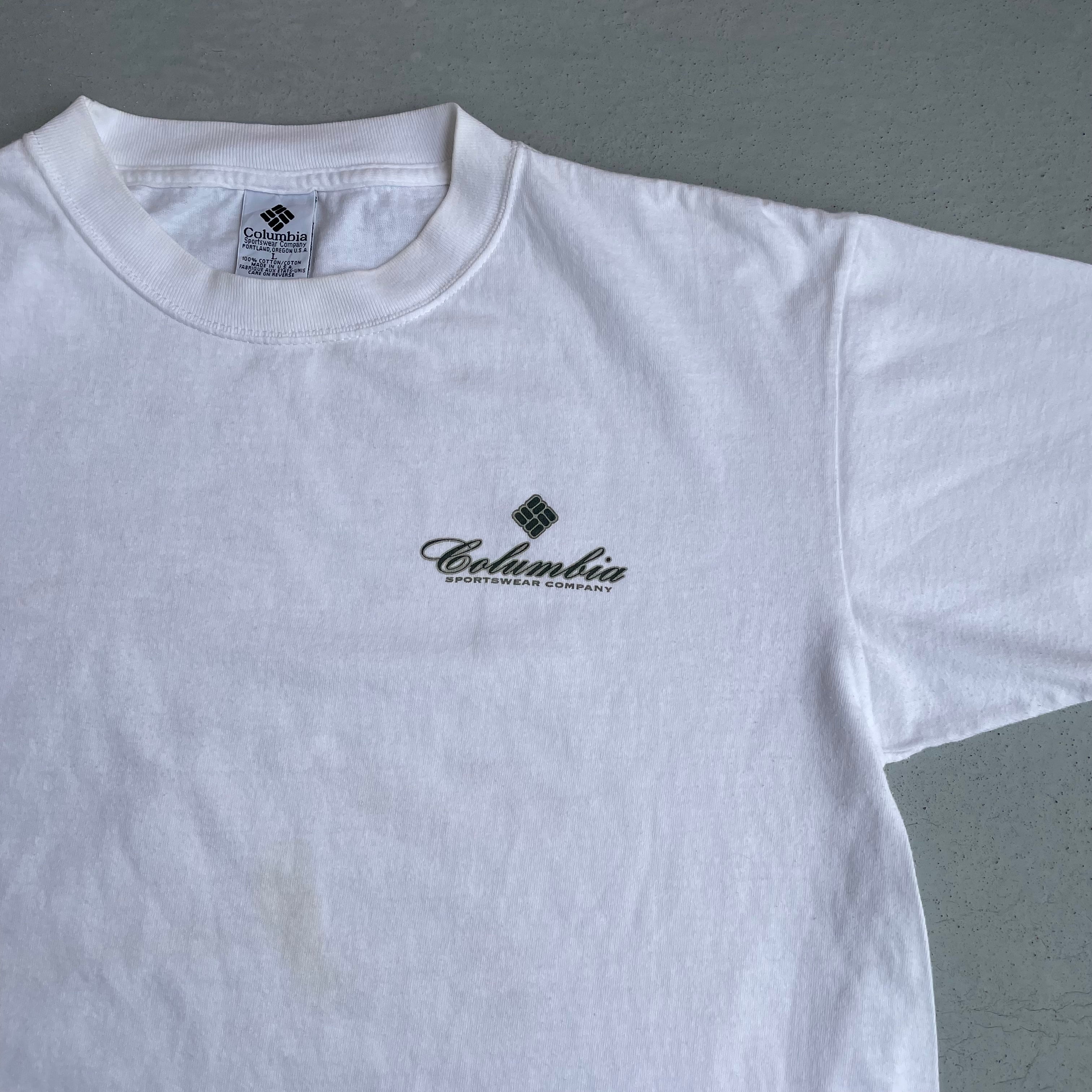 USA製のコロンビアのTシャツです。コロンビアのフィッシングTシャツ、よく見るパターンかもしれませんが、バックにはアメリカや日本のメーカーのルアーが“ルアー名と共に”プリントされています。著作権?によって現代ではありえないのか、最近復刻されたTシャツでは名前が消えた状態でリリースされています。