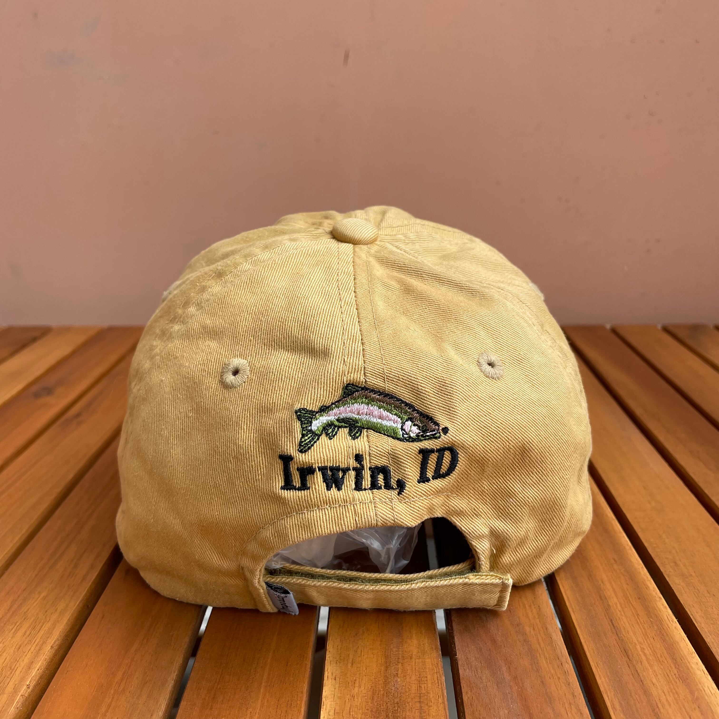 アイダホ州アーウィンのフィッシングのキャップです。おそらく地元の釣りで有名なスネーク川などでガイドをしているアウトフィッターズなどのものだと思います。魚の刺繍がバックにつく感じがフレッシュです。
