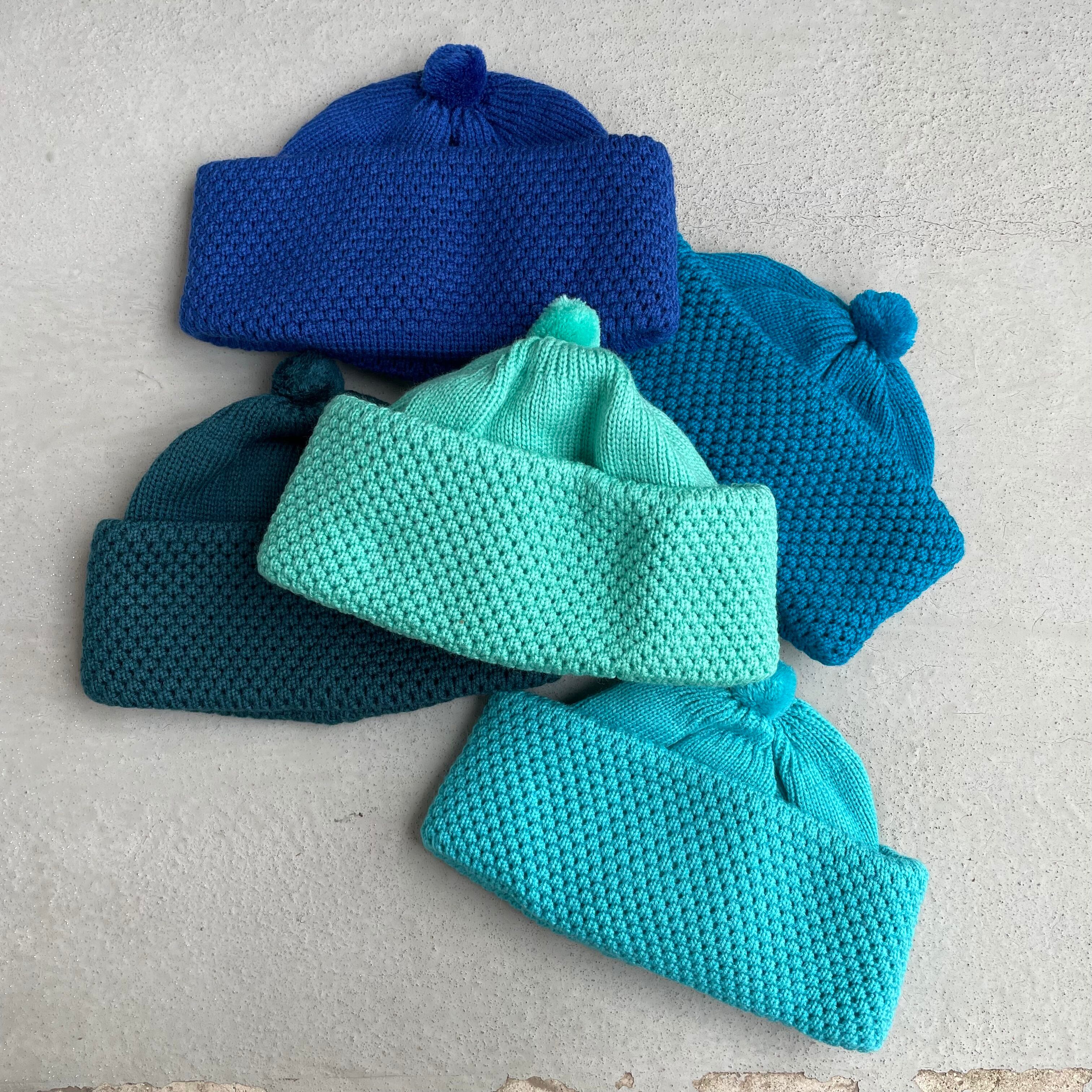 アメリカ買付のたポンポン付きのビーニーです。控えめなポンポンとやや浅めの被り、独特な編み上げが特徴です。被ると頭にピタッと張り付くような絶妙なシルエットで、エスニックな雰囲気が最高です。
