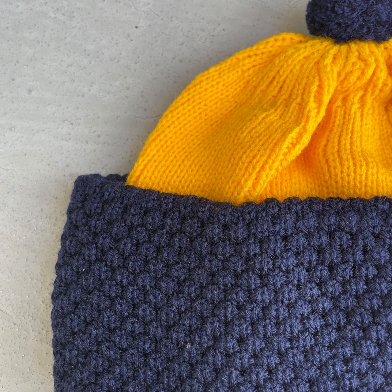 アクリル100%なのでチクチクせず着用のストレスもありません。生地は厚手で手触りはしっとりしています。