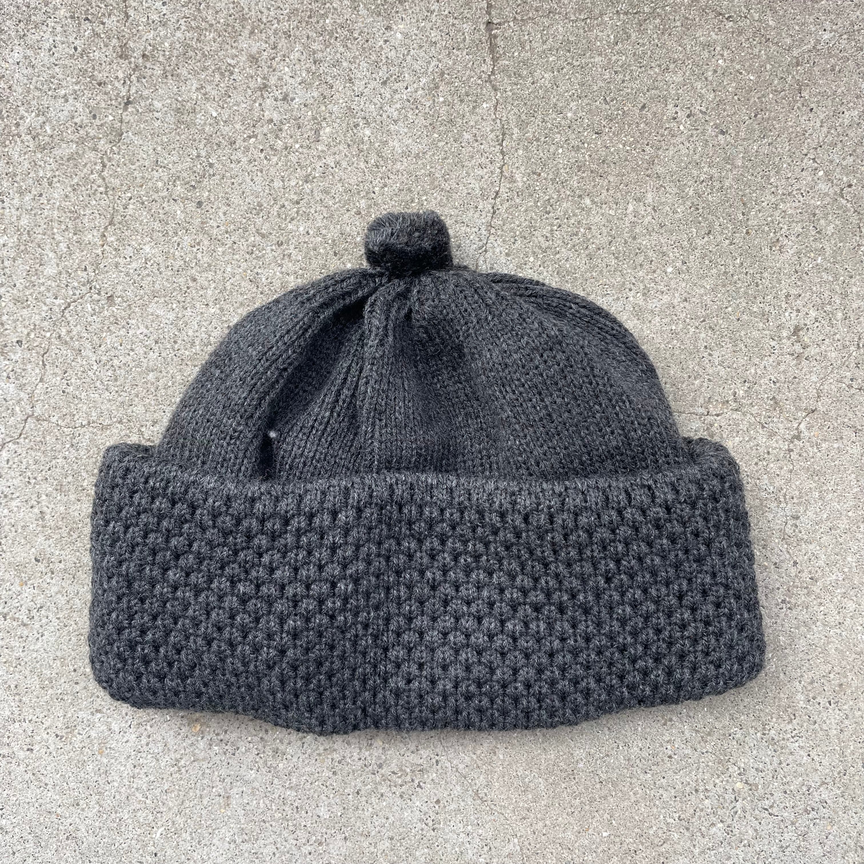 独特かつ丁寧に編み上げられたポンポン付きのビーニーです。控えめなポンポンとやや浅めの被りが特徴です。被ると頭にピタッと張り付くような絶妙なシルエットで、エスニックな雰囲気が絶妙です。