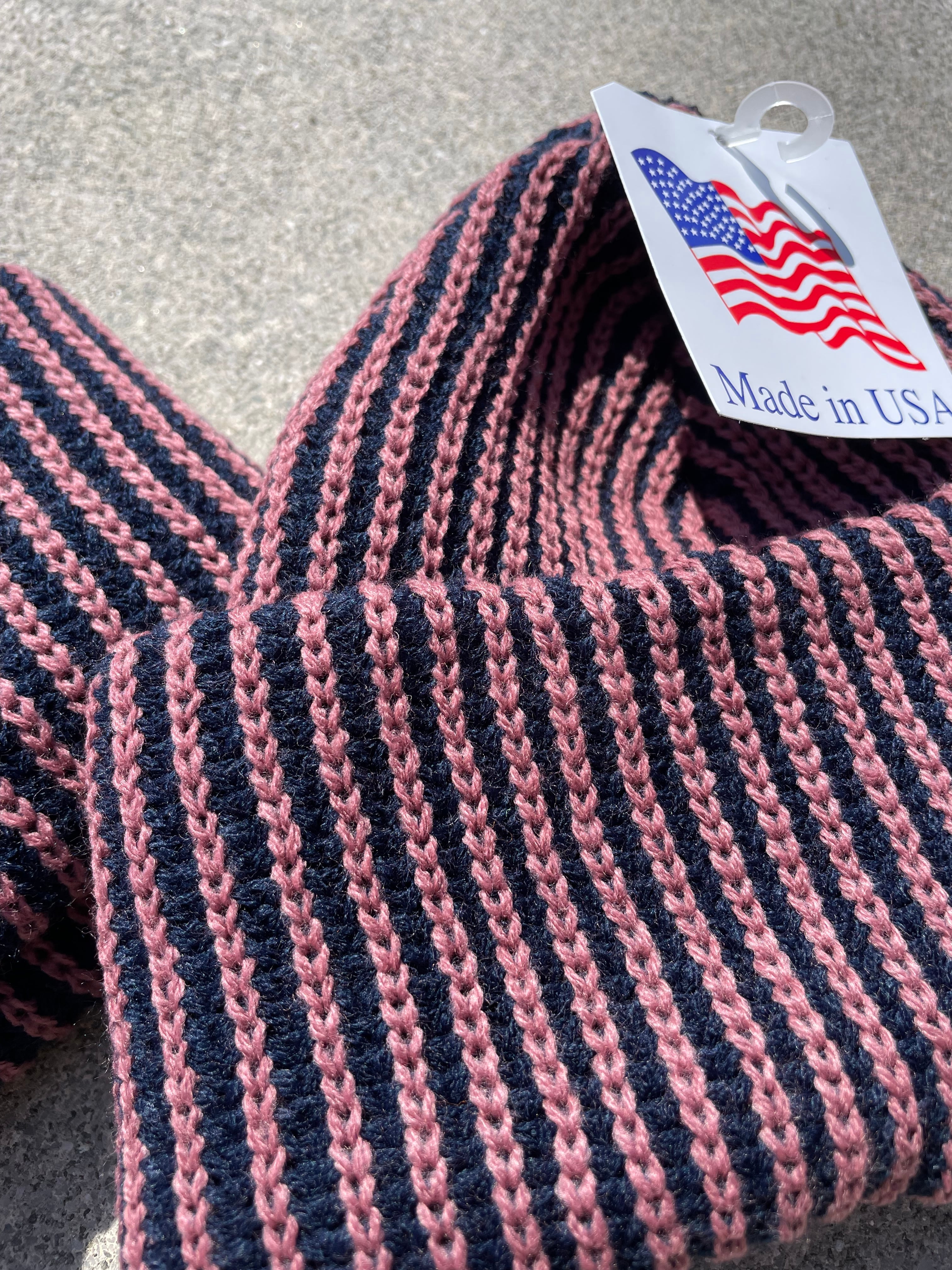 アメリカのポップなキャンディーのようにザクザクのストライプ調が特徴のビーニー